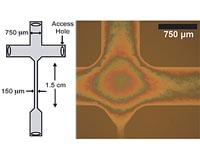 Gaithersburg MD (SPX) Jun 17, 2008 While the results may not rival the artistry of glassblowers in Europe and Latin America, researchers at the National Institute of Standards and Technology (NIST) and Cornell University have found beauty in a new fabrication technique called 'nanoglassblowing" that creates nanoscale (billionth of a meter) fluidic devices used to isolate and study single molecules in solution-including individual DNA strands. The novel method is described in a paper posted online next week in the journal Nanotechnology. Traditionally, glass micro- and nanofluidic devices are fabricated by etching tiny channels into a glass wafer with the same lithographic procedures used to manufacture circuit patterns on semiconductor computer chips. The planar (flat-edged) rectangular canals are topped with a glass cover that is annealed (heated until it bonds permanently) into place. About a year ago, the authors of the Nanotechnology paper observed that in some cases, the heat of the annealing furnace caused air trapped in the channel to expand the glass cover into a curved shape, much like glassblowers use heated air to add roundness to their work. The researchers looked for ways to exploit this phenomenon and learned that they could easily control the amount of 'blowing out" that occurred over several orders of magnitude. As a result, the researchers were able to create devices with 'funnels" many micrometers wide and about a micrometer deep that tapered down to nanochannels with depths as shallow as 7 nanometers-approximately 1,000 times smaller in diameter than a red blood cell. The nanoglassblown chambers soon showed distinct advantages over their planar predecessors. 'In the past, for example, it was difficult to get single strands of DNA into a nanofluidic device for study because DNA in solution balls up and tends to bounce off the sharp edges of planar channels with depths smaller than the ball," says Cornell's Elizabeth Strychalski. 'The gradually dwindling size of the funnel-shaped entrance to our channel stretches the DNA out as it flows in with less resistance, making it easier to assess the properties of the DNA," adds NIST's Samuel Stavis. Future nanoglassblown devices, the researchers say, could be fabricated to help sort DNA strands of different sizes or as part of a device to identify the base-pair components of single strands. Other potential applications of the technique include the manufacture of optofluidic elements-lenses or waveguides that could change how light is moved around a microchip-and rounded chambers in which single cells could be confined and held for culturing. This work was supported in part by Cornell's Nanobiotechnology Center, part of the National Science Foundation's Science and Technology Center Program. It was performed while Samuel Stavis held a National Research Council Research Associateship Award at NIST. Community Email This Article Comment On This Article Share This Article With Planet Earth