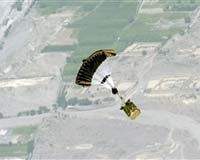 Southwest Asia (SPX) Oct 30, 2006 A new, self-steering airdrop system that's being field tested in Afghanistan represents a revolutionary step beyond traditional delivery methods, the commander of U.S. Central Command Air Forces told a group visiting the command headquarters here during the past weekend. For security reasons, officials requested the base's exact location not be revealed. Air Force Lt. Gen. Gary North praised the new Joint Precision Airdrop System that steers itself from high altitudes using its own global positioning system. "It's FedEx and Domino's, all at once," he told civilian leaders participating in the Joint Civilian Orientation Conference. JPADS offers more accuracy than conventional airdrop methods in delivering supplies to ground troops in extremely remote locations, he said. It also enables drops from higher altitudes, better protecting delivery aircraft from enemy threats. The new system got its first combat tryout in late August when a C-130 Hercules aircraft from the 774th Expeditionary Airlift Squadron dropped supplies to an Army unit operating in a remote location in Afghanistan. Air Force Maj. Neil Richardson, chief of the combat programs and policy branch at Air Mobility Command, gave the performance a thumbs-up. "The system did exactly what it was designed for and delivered ammunition and water to ground troops here in Afghanistan," he said. The Army and Air Force have been developing the JPADS together since the early 1990s. The Army created the airborne guidance unit and parachute decelerators. Meanwhile, the Air Force developed the system's mission planner, a laptop computer that hooks into the cockpit of a C-130 Hercules or C-17 Globemaster III aircraft. This system programs in updated wind data and reference points to the target, as well as new target data based on the ground situation, said Army Lt. Col. Ralph Saunders, Joint Forces Command's operational manager for the system. Here in the theater of operations, Air Force Lt. Col. Charles Ciuzio, chief of the Air Mobility Division at the Combined Air Operations Center, explained during a recent Pentagon videoconference how this capability is supporting the mission. "As the aircraft enters the target area, it releases a probe that transmits real-time wind data back to the aircraft," he said. "The laptop on the plane takes that wind data a computes a 'launch acceptable' region. The crew then flies and releases the bundle within that region." After being released from altitudes as high as 25,000 feet, the pallet drops at speeds topping 100 miles an hour to a secondary release point 1,000 to 1,500 feet above the ground, Ciuzio explained. From that point, the JPAD system releases a larger canopy that delivers the load safely to the ground. Ultimately, officials say they plan to field four sizes of JPADS, the largest of which will be able to airdrop up to 60,000 pounds of cargo -- including a Stryker combat vehicle -- to troops on the ground. They compare the accuracy the system will bring to the airlift community to the capability strike pilots gained with GPS-guided bombs. In the meantime, Ciuzio said, the JPADS is bringing an important new capability to the war on terror. "The ability to accurately airdrop supplies to remote areas, while keeping our aircraft out of the enemy threat, is a significant increase in the capability that we currently have in theater and our ability to support the warfighter," he said. Community Email This Article Comment On This Article Related Links GPS Applications, Technology and Suppliers The latest in Military Technology for the 21st century at SpaceWar.com GPS Applications, Technology and Suppliers