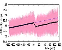 Paris, France (SPX) Oct 26, 2004 A team led by Jacques Laskar from the Institut de Mecanique Celeste et de Calcul des Ephemerides (IMCCE) and the Paris Observatory has released new computational results for the long-term evolution of the orbital and rotational motion of the Earth. Following Milankovitch's theory of the paleoclimate that describes how major climatic changes on Earth are affected by astronomical events, these results have been employed to provide a new calibration of the sedimentary records over the 0 � 23.03 Myr geological period (the so-called Neogen period). Thus, Laskar et al.'s work has contributed to the definition of the new Geological Time Scale that has been adopted by the International Commission of Stratigraphy (ICS) and the International Union of Geological Sciences (IUGS). It is the first time that astronomical computations have been used to establish the ICS geological chronology over a full geological period. Due to gravitational planetary perturbations, the orbit of the Earth slowly changes over time, as does the orientation of the planet's spin axis. These changes induce variations of the solar radiation received on the Earth's surface that are responsible for some of the large climatic changes of the past. The major effects of astronomical phenomena on the Earth's climate were first described by the Serbian mathematician Milankovitch in his theory of the paleoclimate (1941). In 1976, Milankovitch's theory was validated in the landmark work of Hays, Imbrie and Shackleton, who measured the change in continental ice volume over time through the variation of the isotopic ratio of oxygen in marine sediments. The succession of the Ice Ages that occurred during the Pleistocene epoch (between 10 000 yrs and 1.8 million yrs (Myr) ago) has been shown to be related to the periodic changes of the Earth's orbit and rotational parameters. Since then, the Milankovitch theory has been confirmed: the variation of the Earth's orbital parameters regulates some of the major changes in the Earth's climate. Therefore, the computation of the evolving planetary orbits is of major interest to those who try to understand the past and future of the Earth's climate. Such computations, provided by astronomers, were used by Milankovitch to establish his theory. Indeed, he used the orbital computations made in 1856 by Le Verrier, former director of the Paris Observatory and famed discoverer of Neptune in 1846. Since then, the Paris Observatory's teams have continued to be involved in the computation of the variations of planetary orbits over an extended time span. In addition to providing tools for the understanding of the Earth's major climatic changes, computations of planetary orbits make it possible to refine the geological time scale used by geologists. A fundamental step to understanding the Earth's past chronology is the establishment of a complete, precise time scale for geological records. The Geologic Time Scale depends on two aspects of the dating of the records. First, the sedimentary records that are collected worldwide must be linked together through significant events, such as the appearance/disappearance of living species or the paleomagnetic reversals. The sedimentary records can then be associated to a relative timescale. The next step is to date the records on an absolute scale (i.e. to determine their age in Myr). One technique is to use radiogenic dating which is based on the radioactive decay of elements within a sample. This technique is widely applied to date the oldest geological records (more than about 100 Myr old). However, the use of astronomical computations is much more precise for determining the age of younger sedimentary records. The principle of the astronomical dating technique is as follows. The past orbital parameters of the Earth are computed and used to calculate the variation in time of the solar energy input on the Earth (the so-called insolation). Next, the cycles of the varying insolation are matched to the cycles of the paleoclimate inferred from sedimentary archives. The sedimentary records can then be dated in an absolute way. After Milankovitch first used Le Verrier's computational results to establish his theory of paleoclimate cycles, teams from the Paris Observatory have been involved in the contribution of astronomy to paleoclimatic studies. For several decades, paleoclimatologists have used computational results obtained by the Paris Observatory's astronomers to calibrate the geological time scale. Ten years ago, Jacques Laskar and his colleagues computed the evolution of the Earth's orbit for the last 10 Myr. Since then, the collection of geological data has been much improved and more complete astronomical computations were required. This need has now been fulfilled since the new computational results obtained by Jacques Laskar and his team [1] precisely reproduce the Earth's past and future orbits for a period of 40 � 50 Myr. For the first time, astronomical computations of the Earth's past orbit have been used to calibrate a whole geological period, the so-called Neogene geological period, that began 23.03 Myr ago. The new computation contributes to one of the major improvements of the newly published Geological Time Scale (GTS 2004) adopted for the Neogene period by the Union of Geological Sciences. This new time scale results from a collaborative effort among sedimentologists around the world to obtain full coverage of the Earth's history for the last 3.8 billion years (Gyr). Thanks to the adoption of these astronomical results for the calibration of the Neogene period, the new GTS 2004 makes it possible for paleoclimatologists to be more precise in dating the geological events that occurred during this geological period. In fact, the past and future orbits of the Earth have been computed for the period between �250 and +250 Myr. However, one of the major problems with such computations is that over a long time span, plan