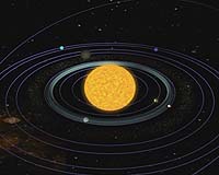 Red Giants Redefine the Search for Extra-Terrestrial Life The same holds true for planets and moons as they orbit their own red giant suns. Billions of years ago, these stars were similar to our Sun. Imagine the events as they unfolded: A Sun-like star explodes into its red giant phase, growing tremendously in size and brightness. Warm rays from the star reach out to a once-frozen and dead moon. The solitary satellite's icy top layer quickly melts into liquid water, which creeps across the surface and fills old dusty craters with warmer seas. The stage is set for the birth of new life in the moon's now-vibrant oceans. Currently, there are at least 150 red giant stars within 100 light years of Earth and many of them may have orbiting planets capable of supporting life. A new frontier has opened for planet-hunters around the world. One such endeavor, NASA's Kepler mission, hopes to discover smaller Earth-like planets outside our solar system. Looking for tiny dips in the brightness of a star when a planet crosses in front of it, researchers will observe about 100,000 stars in one small patch of sky for four years. Kepler is set for launch in 2007. Community Email This Article Comment On This Article Related Links SpaceDaily Search SpaceDaily Subscribe To SpaceDaily Express Life Beyond Earth Lands Beyond Beyond - extra solar planets - news and science