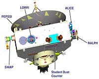 The New Horizons spacecraft carries seven science instruments, including: Alice (also shown in accompanying photo) � an ultraviolet imaging spectrometer that will probe the atmospheric composition and structure of Pluto.