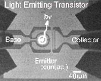 Champaign - Jan 06, 2004 Put the inventor of the light-emitting diode and the maker of the world's fastest transistor together in a research laboratory and what kinds of bright ideas might surface? One answer is a light-emitting transistor that could revolutionize the electronics industry. Professors Nick Holonyak Jr. And Milton Feng at the University of Illinois at Urbana-Champaign have uncovered a light-emitting transistor that could make the transistor the fundamental element in optoelectronics as well as in electronics. The scientists report their discovery in the Jan. 5 issue of the journal Applied Physics Letters. "We have demonstrated light emission from the base layer of a heterojunction bipolar transistor, and showed that the light intensity can be controlled by varying the base current," said Holonyak, a John Bardeen Professor of Electrical and Computer Engineering and Physics at Illinois. Holonyak invented the first practical light-emitting diode and the first semiconductor laser to operate in the visible spectrum. "This work is still in the early stage, so it is not yet possible to say what all the applications will be," Holonyak said. "But a light-emitting transistor opens up a rich domain of integrated circuitry and high-speed signal processing that involves both electrical signals and optical signals." A transistor usually has two ports: one for input and one for output. "Our new device has three ports: an input, an electrical output and an optical output," said Feng, the Holonyak Professor of Electrical and Computer Engineering at Illinois. "This means that we can interconnect optical and electrical signals for display or communication purposes." Feng is credited with creating the world's fastest bipolar transistor, a device that operates at a frequency of 509 gigahertz. Graduate student Walid Hafez fabricated the light-emitting transistor in the university's Micro and Nanotechnology Laboratory. Unlike traditional transistors, which are built from silicon and germanium, the light-emitting transistors are made from indium gallium phosphide and gallium arsenide. "In a bipolar device, there are two kinds of injected carriers: negatively charged electrons and positively charged holes," Holonyak said. "Some of these carriers will recombine rapidly, supported by a base current that is essential for the normal transistor function." The recombination process in indium gallium phosphide and gallium arsenide materials also creates infrared photons, the "light" in the researchers' light-emitting transistors. "In the past, this base current has been regarded as a waste current that generates unwanted heat," Holonyak said. "We've shown that for a certain type of transistor, the base current creates light that can be modulated at transistor speed." Although the recombination process is the same as that which occurs in light-emitting diodes, the photons in light-emitting transistors are generated under much higher speed conditions. So far, the researchers have demonstrated the modulation of light emission in phase with a base current in transistors operating at a frequency of 1 megahertz. Much higher speeds are considered certain. "At such speeds, optical interconnects could replace electrical wiring between electronic components on a circuit board," Feng said. This work could be the beginning of an era in which photons are directed around a chip in much the same fashion as electrons have been maneuvered on conventional chips. "In retrospect, we could say the groundwork for this was laid more than 56 years ago with John Bardeen and Walter Brattain and their first germanium transistor," said Holonyak, who was Bardeen's first graduate student. "But the direct recombination involving a photon is weak in germanium materials, and John and Walter just wouldn't have seen the light � even if they had looked. If John were alive and we showed him this device, he would have to have a big grin." Community Email This Article Comment On This Article Related Links University of Illinois at Urbana-Champaign SpaceDaily Search SpaceDaily Subscribe To SpaceDaily Express Space Technology News - Applications and Research