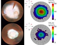 Tucson AZ (SPX) Sep 17, 2009 Scientists from the Tucson-based Planetary Science Institute have created the first detailed maps that show the amount of dry ice (solid carbon dioxide) deposited in the polar regions of Mars. The maps reveal how the ice thickness varies with the seasons. The maps were created from measurements taken by the Mars Odyssey neutron spectrometer, said PSI Senior Scientist Thomas H. Prettyman, who is the principal author of a paper on this work that was recently published in the Journal of Geophysical Research, "Characterization of Mars' Seasonal Caps Using Neutron Spectroscopy." The spectroscopy data, gathered during two Martian years, allowed Prettyman and his colleagues to accurately determine the thickness of the Martian ice caps over time. The amount of carbon dioxide ice at the poles varies in response to seasonal changes in sunlight, and about 25 percent of the atmosphere is cycled through the seasonal caps, Prettyman explained. "We need a detailed understanding of the present atmosphere on Mars in order to answer fundamental questions about the planet's climate history, including whether conditions on Mars could have been suitable for life in the distant past," he explained. The local thickness of the polar caps depends on several factors, such as the amount of solar energy absorbed by the surface and atmosphere and the flow of warm air from lower latitudes that accompanies carbon dioxide condensation at the poles, Prettyman said. In the northern polar region, carbon dioxide deposition is skewed toward an area known as "Acidalia," Prettyman observed. Thicker carbon dioxide ice in that region may be caused by frigid winds coming from Chasma Boreale, a large canyon near the Martian north pole. In the southern hemisphere, carbon dioxide ice accumulates more rapidly in a region known as the south polar residual cap, which is offset from the pole and contains perennial carbon dioxide ice deposits. Prettyman and his colleagues concluded that the asymmetry in the south polar seasonal cap is caused primarily by variations in surface composition. "The regions outside the residual cap consist of water ice mixed with rocks and soil that are warmed during summer," he said. "This delays the onset of carbon dioxide ice accumulation in the fall. In addition, heat stored in water-rich regions is gradually released during fall and winter, further limiting ice accumulation." Prettyman and his colleagues also used neutron spectroscopy to determine how much non-condensable gas (argon and nitrogen) remains in the atmosphere at high latitudes as carbon dioxide condenses. "We observed strong enrichment of non-condensable gas at the south pole during fall and winter," Prettyman said. "The observed time variation of the concentration of nitrogen and argon provides information about local circulation patterns. This includes the timing and strength of the polar winter vortex, a large-scale, cyclonic flow that inhibits mixing of nitrogen and argon with air from lower latitudes." Accurate data on the thickness of carbon dioxide ice and its distribution, as well as data on seasonal concentrations of non-condensable gases, will allow scientists to refine Martian general circulation models, Prettyman said. This will give them a deeper understanding of atmospheric dynamics and the planet's climate change over time. Neutron spectroscopy is key to determining carbon dioxide ice thickness during the long polar nights, Prettyman explained. "Unlike optical techniques, neutron spectroscopy does not require sunlight and can peer into the darkness, revealing details of the seasonal caps that have never been observed before," he said. Prettyman, PSI Senior Scientist William Feldman, and Timothy Titus of the U.S. Geological Survey in Flagstaff, Ariz., conducted the research with funding provided by the NASA Mars Odyssey Participating Scientist Program. The neutron spectrometer is a subsystem of the gamma ray spectrometer instrument suite on Mars Odyssey. Share This Article With Planet Earth