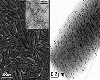 Chicago IL (SPX) Mar 28, 2007 Appropriating cellulose fibers from cotton and crystallizing them, scientists at Pacific Northwest National Laboratory have grown never-before-seen configurations of metal crystals that show promise as components in biosensors, biological imaging, drug delivery and catalytic converters. Deriving the desired chemical and physical properties necessary for those applications hinges on the uniform size of the metal crystals. Depending on the metal, they must be between 2 and 200 nanometers, Yongsoon Shin, a staff scientist at the Department of Energy laboratory in Richland, Wash., reported Monday at the national meeting of the American Chemical Society. PNNL laboratory fellow Gregory Exarhos led the research. Exarhos called Shin's experimental work "the first report of the efficacy of nanocrystalline cellulose templates in driving the formation of ordered metal and metal oxide nanoparticles at surfaces." Exarhos has dubbed these cellulose nanocrystals "molecular factories." Using acid-treated cellulose fibers from cotton as a natural template, the PNNL team has been able to grow gold, silver, palladium, platinum, copper, nickel and other metal and metal-oxide nanocrystals quickly and of uniform size, Shin said. The metals display catalytic, electrical and optical that would not be present in larger or odd-sized crystals. The acid converts the cellulose to a large, stable crystallized molecule rich in oxygen-hydrogen, or hydroxyl, groups, predictably spaced along the long chemical chains, or polymers, that comprise the cellulose molecule's backbone. When most metal salts dissolved in solution are added in a pressurized oven and heated 70 to 200 degrees centigrade or warmer for four to 16 hours, uniform metal crystals form at the hydroxyl sites. The researchers called this method a "green process," requiring only heat, the crystalline cellulose and the metal salts. Other attempts to get uniform nanometals have resulted in crystals of widely variable sizes that require strong, caustic chemicals as reducing and stabilizing agents. "We have some preliminary catalytic results," Shin said, involving "coupling reactions of organic molecules for palladium and UV-irradiated degradation of organic dyes in water with selenium metals. "Smaller particles-15 to 20 nanometers-showed faster and higher catalytic conversion ratio compared to commercial catalysts." Community Email This Article Comment On This Article Related Links DOE/Pacific Northwest National Laboratory All about the technology of space and more Space Technology News - Applications and Research