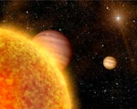 earlier related report Columbus OH - An international team of astronomers has discovered two planets that resemble smaller versions of Jupiter and Saturn in a solar system nearly 5,000 light years away. The find suggests that our galaxy hosts many planetary systems like our own, said Scott Gaudi, assistant professor of astronomy at Ohio State University. He and his colleagues reported their results in the February 15 issue of the journal Science. The two planets were revealed when the star they orbit crossed in front of a more distant star as seen from Earth. For a two-week period from late March through early April of 2006, the nearer star magnified the light shining from the farther star. The phenomenon is called gravitational microlensing, and this was a particularly dramatic example: the light from the more distant star was magnified 500 times. The Optical Gravitational Lensing Experiment (OGLE) first detected the event, dubbed OGLE-2006-BLG-109, on March 28, 2006. The Microlensing Follow Up Network (MicroFUN), led by Andrew Gould, professor of astronomy at Ohio State, then joined with OGLE to organize astronomers worldwide to gather observations of it. Andrzej Udalski, professor of astronomy at Warsaw University Observatory, is the leader of OGLE. Gaudi took the lead in analyzing the data as they came in. As he studied the light signal, he saw a distortion that he thought was caused by a Saturn-mass planet. Then, less than a day later, came an additional distortion he wasn't expecting: a "blip" in the signal that appeared to be caused by a second, larger planet orbiting the same star. Over the next few months, Gaudi demonstrated that this two-planet interpretation was correct. Then David Bennett, a research associate professor of astrophysics and cosmology at the University of Notre Dame, refined Gaudi's preliminary model using sophisticated software, and revealed additional details about the system. This is the third time a Jupiter-mass planet was found by microlensing, Gaudi explained. In the previous two cases, additional planets would have been very difficult to detect, had they been there. "This is the first time we had a high-enough magnification event where we had significant sensitivity to a second planet -- and we found one." Gaudi said. "You could call it luck, but I think it might just mean that these systems are common throughout our galaxy." Astronomers have found two planets at once before, "but using other techniques that don't pick up on solar systems like ours," he said. The newly-discovered planets appear to be gaseous planets like Jupiter and Saturn -- only about 80 percent as big -- and they orbit a star about half the size of the sun. The star is dim and cold compared to ours, issuing only five percent as much light. Still, the new solar system appears to be a smaller analog of our own. The larger planet is about as massive compared to its star as Jupiter is to ours. The smaller planet shares a similar mass ratio with Saturn. Also, the smaller planet is roughly twice as far from its star as the larger one, just as Saturn is roughly twice as far away from the sun as Jupiter. Although the star is much dimmer than our sun, temperatures at both planets are likely to be similar to that of Jupiter and Saturn, because they are closer to their star. "The temperatures are important because these dictate the amount of material that is available for planet formation," Gaudi said. "Most theorists think that the biggest planet in our solar system formed at Jupiter's location because that is the closest to the sun that ice can form. Saturn is the next biggest because it is in the next location further away, where there is less primordial material available to form planets." "Theorists have wondered whether gas giants in other solar systems would form in the same way as ours did. This system seems to answer in the affirmative." The fact that astronomers found the planets during the first event that allowed such a detection suggests that these scaled-down versions of our solar system are very common, he added. Previously, astronomers had found four planets using microlensing; two of those were found by the Ohio State University-based MicroFUN group. The latest two planets make six, and he expects that number to double over the next year as other teams publish new findings. "We're just getting better at what we do," Gaudi said. "We've hit our stride with this technique." He has also calculated that the next generation of microlensing experiments -- using telescopes on the ground and in space -- will likely be able to detect analogs to all of our solar system's planets, except for the tiniest one, Mercury. The current discovery relied on 11 different ground-based telescopes in countries around the world, including New Zealand, Tasmania, Israel, Chile, the Canary Islands, and the United States. Both professional and amateur skywatchers joined in. People from three other microlensing collaborations -- the Microlensing Observations in Astrophysics (MOA) Collaboration, the Probing Lensing Anomalies NETwork (PLANET), and the RoboNet Collaboration -- all contributed observations and are co-authors of the study with MicroFUN and OGLE. Gaudi described this microlensing event as the most complicated one ever studied. The astronomers carefully modeled their data on computers, and explored all possible explanations for the light signal. A year and a half later, they were confident that they'd found two planets. In part, their confidence came from additional observations from the W.M. Keck Observatory in Hawaii, which they used to calculate the mass of the star. Ohio State coauthors on the Science paper included Darren DePoy and Richard Pogge, both professors of astronomy; and Subo Dong and Stephan Frank, both graduate students. Other coauthors hailed from the University of Notre Dame, Warsaw University Observatory, Auckland Observatory, Tel-Aviv University, Farm Cove Observatory, Mt. John O