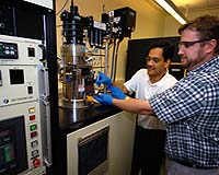 West Lafayette IN (SPX) Aug 15, 2007 Researchers have demonstrated a new technology using tiny "ionic wind engines" that might dramatically improve computer chip cooling, possibly addressing a looming threat to future advances in computers and electronics. The Purdue University researchers, in work funded by Intel Corp., have shown that the technology increased the "heat-transfer coefficient," which describes the cooling rate, by as much as 250 percent. "Other experimental cooling-enhancement approaches might give you a 40 percent or a 50 percent improvement," said Suresh Garimella, a professor of mechanical engineering at Purdue. "A 250 percent improvement is quite unusual." When used in combination with a conventional fan, the experimental device enhanced the fan's effectiveness by increasing airflow to the surface of a mock computer chip. The new technology could help engineers design thinner laptop computers that run cooler than today's machines. Findings are detailed in a research paper that has been accepted for publication in the Journal of Applied Physics and is tentatively scheduled to appear in the Sept. 1 issue. The paper was authored by mechanical engineering doctoral student David Go, Garimella, associate professor of mechanical engineering Timothy Fisher and Intel research engineer Rajiv Mongia. "This technology is very exciting and innovative," Mongia said. "It has the potential of enabling imaginative notebook and handheld PC designs in the future." The new cooling technology could be introduced in computers within three years if researchers are able to miniaturize it and make the system rugged enough, Garimella said. As the technology is further developed, such cooling devices might be integrated into portable consumer electronics products, including cell phones. Advanced cooling technologies are needed to help industry meet the conflicting goals of developing more compact and lightweight computers that are still powerful enough to run high-intensity programs for video games and other graphics-laden applications. "In computers and electronics, power equals heat, so we need to find ways to manage the heat generated in more powerful laptops and handheld computers," Fisher said. Also involved in the research was undergraduate mechanical engineering student Raul Maturana, who was supported with a National Science Foundation fellowship. The experimental cooling device, which was fabricated on top of a mock computer chip, works by generating ions - or electrically charged atoms - using electrodes placed near one another. The device contained a positively charged wire, or anode, and negatively charged electrodes, called cathodes. The anode was positioned about 10 millimeters above the cathodes. When voltage was passed through the device, the negatively charged electrodes discharged electrons toward the positively charged anode. Along the way, the electrons collided with air molecules, producing positively charged ions, which were then attracted back toward the negatively charged electrodes, creating an "ionic wind." This breeze increased the airflow on the surface of the experimental chip. Conventional cooling technologies are limited by a principle called the "no-slip" effect - as air flows over an object, the air molecules nearest the surface remain stationary. The molecules farther away from the surface move progressively faster. This phenomenon hinders computer cooling because it restricts airflow where it is most needed, directly on the chip's hot surface. The new approach potentially solves this problem by using the ionic wind effect in combination with a conventional fan to create airflow immediately adjacent to the chip's surface, Fisher said. The device was created at Purdue's Birck Nanotechnology Center in the university's Discovery Park. The researchers quantified the cooling effect with infrared imaging, which showed the technology reduced heating from about 60 degrees Celsius - or 140 degrees Fahrenheit - to about 35 degrees C, or 95 F. "We've been trying to make this work for about a year, and now we have shown that it works quite well," Garimella said. Patents are pending for the new design. The researchers also have developed computational models to track the flow of electrons and ions generated by the device, information needed for designing future systems using the technology. Computer chips are constantly being upgraded by creating designs with more densely packed circuits, transistors and other electronic components. The number of transistors per chip has been doubling every 18 months or so, in line with a general principle called Moore's law. As performance increases, however, so does heat generation, particularly in small hot spots. These hot spots not only hinder performance, but also could damage or destroy delicate circuitry. This means new cooling methods will be required for more powerful computers in the future. The next step in the research will be to reduce the size of components within the device from the scale of millimeters to microns, or millionths of a meter. Miniaturizing the technology will be critical to applying the method to computers and consumer electronics, allowing the device to operate at lower voltage and to cool small hot spots, Garimella said. Another challenge will be making the technology rugged enough for commercial applications. "As things get smaller, they get more delicate, so we need to strengthen all the elements. And we believe we can achieve this goal in a year or so," Garimella said. The researchers had previously authored two peer-reviewed papers about the work. Earlier work at Purdue to develop the ionic-wind technique has been supported by the National Science Foundation. "This technology is very exciting and innovative," Mongia said. "It has the potential of enabling imaginative notebook and handheld PC designs in the future." The new cooling technology could be introduced in computers within three years if research