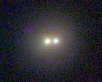 Santa Cruz CA (SPX) Jan 13, 2005 For the first time, astronomers have been able to combine the deepest optical images of the universe, obtained by the Hubble Space Telescope, with equally sharp images in the near-infrared part of the spectrum using a sophisticated new laser guide star system for adaptive optics at the W. M. Keck Observatory in Hawaii. The new observations, presented at the American Astronomical Society (AAS) meeting in San Diego this week, reveal unprecedented details of colliding galaxies with massive black holes at their cores, seen at a distance of around 5 billion light-years. Observing distant galaxies in the infrared range reveals older populations of stars than can be seen at optical wavelengths, and infrared light also penetrates clouds of interstellar dust more readily than optical light. The new infrared images of distant galaxies were obtained by a team of researchers from the University of California, Santa Cruz, UCLA, and the Keck Observatory. Jason Melbourne, a graduate student at UC Santa Cruz and lead author of the study, said the initial findings include some surprises and that researchers will continue to analyze the data in the weeks to come. "This is very exciting, because we have never been able to achieve this level of spatial resolution in the infrared before," Melbourne said. In addition to Melbourne, the research team, led by David Koo of UCSC and James Larkin of UCLA, includes Jennifer Lotz, Claire Max, and Jerry Nelson at UCSC; Shelley Wright and Matthew Barczys at UCLA; and Antonin H. Bouchez, Jason Chin, Scott Hartman, Erik Johansson, Robert Lafon, David Le Mignant, Paul J. Stomski, Douglas Summers, Marcos A. van Dam, and Peter L. Wizinowich at Keck Observatory. "For the first time now in these deepest images of the universe we can cover all wavelengths of light from the optical to the infrared with the same level of spatial resolution, which allows us to observe detailed substructures in distant galaxies and study their constituent stars with a precision we couldn't possibly obtain otherwise," said Koo, a professor of astronomy and astrophysics at UCSC. The images were obtained by Wright and the Keck AO team during testing of the laser guide star adaptive optics system on the 10-meter Keck II Telescope. They are the first science-quality images of distant galaxies obtained with the new system. This marks a major step for the Center for Adaptive Optics Treasury Survey (CATS), which will use adaptive optics to observe a large sample of faint, distant galaxies in the early universe, said UCLA's Larkin. "We've worked very hard for several years taking data around bright stars. But we have been very restricted in terms of the number and types of objects that we can observe. Only with the laser can we now reach the richest and most exciting targets, especially those with beautiful optical images from the Hubble Space Telescope," Larkin said. Adaptive optics (AO) corrects for the blurring effect of the atmosphere, which seriously degrades images seen by ground-based telescopes. An AO system precisely measures this blurring and corrects the image using a deformable mirror, applying corrections hundreds of times per second. To measure the blurring, AO requires a bright point-source of light in the telescope's field of view, which can be created artificially by using a laser to excite sodium atoms in the upper atmosphere, causing them to glow. Without such a laser guide star, astronomers have had to rely on bright stars ("natural guide stars"), which drastically limits where AO can be used in the sky. Furthermore, natural guide stars are too bright to allow observations of very faint, distant galaxies in the same part of the sky, Koo said. "The advent of the laser guide star at Keck has opened up the sky for adaptive optics observations, and we can now use Keck to focus on those fields where we already have wonderful, deep optical images from the Hubble Space Telescope," Koo said. Because the diameter of the Keck Telescope's mirror is four times larger than Hubble's, it can obtain images four times sharper than Hubble in the near infrared now that the laser guide star adaptive optics system is available to overcome the blurring effects of the atmosphere. The images being presented at the AAS meeting were obtained in an area of the sky known as the GOODS-South field, where deep observations have already been made by Hubble, the Chandra X-ray Observatory, and other telescopes. There are six faint galaxies in the images, including two x-ray sources identified by Chandra. The x-ray emissions, combined with the disordered morphology of these objects, suggested recent merger activity, Melbourne said. Mergers can funnel large amounts of matter into the center of a galaxy, and x-ray emissions from the galactic center indicate the presence of a massive black hole that is actively consuming matter. "We are now fairly certain that we are seeing galaxies that have undergone recent mergers," Melbourne said. "One of these systems has a double nucleus, so you can actually see the two nuclei of the merging galaxies. The other system is highly disordered - it looks like a train wreck - and is a much stronger x-ray source." In addition to lighting up the galactic nucleus with x-ray emissions, mergers also tend to trigger the formation of new stars by shocking and compressing clouds of gas. So the researchers were surprised to find that the system with a double nucleus is dominated by relatively old stars and does not appear to be producing many young stars. "If we are right about the merger scenario, then this merger is occuring between two galaxies that had already formed most of their stars billions of years before and did not have a lot of gas left over to make new stars," Melbourne said. If additional study shows that such objects are common further back in time, these observations could help explain one of the puzzles of galaxy formation. According to the prevaili