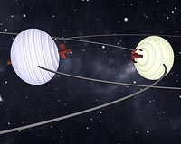 Boston MA (SPX) Sep 18, 2009 A pair of unusual stars known as DI Herculis has confounded astronomers for three decades, but new observations by MIT researchers and their colleagues have provided data that they say solve the mystery once and for all. It has long been clear that there was something odd going on in this double-star system, but it wasn't clear just what that was. The precession of the orbits of the two stars around each other - that is, the way the plane of those orbits change their tilt over time, like the wobbling of a top as it winds down - seems to take place four times more slowly than established theory says it should. The anomaly is so unexpected that at one point it was seen as possible evidence against Einstein's long-accepted theory of relativity. But the true explanation seems to be much less radical, though still unique among observed stars. Both of them, it turns out, are rotating tipped over on their sides, relative to the plane of their orbits around each other, instead of straight upright like most binary stars. Because stars rotate fast enough to have significant equatorial bulges (just like on Earth, which is wider at the equator than pole-to-pole), these tipped-over bulges produce an unusual tidal interaction between them that counteracts the forces that would normally cause the expected rate of precession, and that accounts for the observed slowing of this effect. And so, relativity has dodged another bullet. "It's been a riddle for 30 years," says MIT postdoctoral researcher Simon Albrecht, co-author of a new paper appearing in the Sept. 17 issue of Nature that describes the solution. New observations of the stars, which are about 2,000 light years from Earth but orbit each other with a separation of only about one-fifth the distance from the Earth to the sun, were carried out by Albrecht, assistant professor of physics Joshua Winn, and others. Using a high-resolution spectrograph called Sophie on a 1.93-meter telescope at the Observatoire de Haute-Provence in France, they found an answer to the mystery. The new observations, after detailed analysis, reveal that one of the two stars is tipped over by at least 70 degrees from the vertical, and the other is tipped the opposite way by more than 80 degrees. One lesson of this finding, says Winn, is to "check your assumptions." The more astronomers learn about the details of stars and planetary systems, the more odd variations keep turning up. "Everyone always assumed that planets orbit in the same plane as their star's rotation," until some recent discoveries of exceptions to that rule, "and that binary stars are aligned. These assumptions are just not true." The assumption has been that binary stars should always have their spin axes aligned, because they are believed to have formed from a single swirling cloud of dust and gas, whose direction of rotation should be inherited by the resulting stars. Now that this drastically misaligned pair of stars has been found, theorists might be forced to rethink how such binary systems form. "Maybe most binary stars are formed misaligned," but then most of them become aligned as a result of their gravitational interaction, Winn says. Or maybe it's the opposite: most form aligned and some become tidally disturbed and lose their alignment. Other star and planet systems are "certainly more dynamic than we would have guessed, based on our solar system orbits," Albrecht says. It's also possible that these two stars formed separately and one was captured by the gravitational attraction of the other after a close encounter, but Albrecht says that is unlikely, because the stars are near-twins. "These are so similar in mass and lifetime that we wouldn't expect that," he says. The work was carried out in collaboration with Sabine Reffert of the Zentrum fur Astronomie in Heidelberg, Germany, and Ignas Snellen of the Leiden Observatory in the Netherlands (where Albrecht earned his PhD). It was partly supported by grants from NASA's Origins program, the Optical Infrared Coordination network, and a Rubicon fellowship from the Netherlands Organisation for Scientific Research. Share This Article With Planet Earth