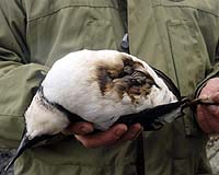 Oslo (AFP) Jan 15, 2007 An oil slick from a grounded cargo ship off Norway's west coast has covered some 440 birds in oil and that number is expected to rise, ornithologists said on Monday. "The situation is dramatic for birds. We are expecting a lot of deaths," Frode Falkenberg, an ornithologist with the Norwegian ornithological association NOF, told AFP. Norwegian media cited local officials as saying the birds affected were primarily sea gulls and eider ducks. A fish farm owned by Austevoll Seafood told regional daily BT that the oil slick had reached its fish pens, but said it would only know the extent of the damage in a few days. However, both the environmental group WWF and the coast guard said the threat to the environment was not as bad as had been feared. Some 370 tonnes of oil have seeped from the 180-metre (600-foot) Cypriot-flagged vessel which ran aground and split in two in heavy weather near the island of Fedje off southwestern Norway on Friday night, coastguard officials said. The 25-man crew was evacuated safely from the ship on Friday. But efforts to pump the remaining oil out of the wreck have not yet gotten underway due to stormy weather which has lashed the area since Friday. Divers have not been able to inspect the ship for the same reason. According to Norwegian public television NRK, coast guard aircraft that overflew the area on Monday observed that oil was still leaking from the wreck. The ship was not carrying any cargo but contained 585 tonnes of heavy fuel and 72 tonnes of diesel for its own use, the coast guard said.