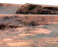 Paris (AFP) March 07, 2007Scientists on Thursday said they had found evidence that Mars was once latticed by an underground water system, proving that the Red Planet has had a long and complex relationship with one of the potential ingredients for life. Writing in the British journal Nature, researchers focussed on questions thrown up by NASA's Martian rover, Opportunity, in its exploration of a vast sloping plain called Meridiani Planum. |