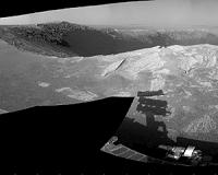Pasadena CA (JPL) Feb 15, 2011 Opportunity continues to be in the period of solar conjunction. Solar conjunction is the period when communications between Earth and Mars are disrupted because the Sun is directly in between the two planets. The last communication with the rover was on Sol 2499 (Feb. 3, 2011), and all appears to be healthy. Opportunity has a complete set of sequences on board to carry her through the conjunction period. Daily, multi-hour spectra will be collected by the moessbauer (MB) spectrometer which is positioned on the surface target Luis de Torres. A single alpha particle X-ray spectrometer (APXS) atmospheric argon measurement will be performed on Sol 2504 (Feb. 8, 2011). Just before the conjunction blackout, Opportunity collected a set of 13-filter panoramic camera (Pancam) images of surrounding targets. As of Sol 2499 (Feb. 3, 2011), solar array energy production was 585 watt-hours with an unknown atmospheric opacity (Tau) of 1.07 and an estimated solar array dust factor of 0.678. The increase in solar array energy from the last reporting period seems to suggest a solar array cleaning event. Total odometry is 26,658.64 meters (26.66 kilometers, or 16.56 miles).