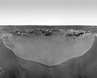 Pasadena CA (SPX) Feb 11, 2009 Happy anniversary to both Spirit and Opportunity for completing five Earth-years exploring the surface of Mars! Opportunity's goal this past week has been to put the pedal to the metal and acquire drive-by images of a crater dubbed "Ranger Crater." Preliminary results from last week's shake of the mirror on the miniature thermal emission spectrometer on sol 1771 (Jan. 16, 2009) indicated that no dust was removed as engineers had hoped. Opportunity is healthy, and all subsystems are performing as expected as of the downlink of information on sol 1776 (Jan. 21, 2009). Solar energy levels are at 613 watt-hours (slightly more than the amount of energy needed to light a 100-watt bulb for six hours). Tau, a measure of sunlight-blocking dust in the aosphere, is 0.455. The dust factor, a measure of the proportion of sunlight penetrating dust on the solar arrays, is 0.6196. Sol-by-sol summary In addition to monitoring daily dust-related changes in aospheric clarity with the panoramic camera and relaying data to NASA's Mars Odyssey orbiter for transmission to Earth, Opportunity completed the following activities: Sol 1770 (Jan. 15, 2009): Opportunity drove and acquired image mosaics with the navigation and panoramic cameras. The rover measured argon gas in the Martian aosphere using the alpha-particle X-ray spectrometer and went into a mini-deep sleep. Sol 1771: Opportunity completed a systematic foreground quarter survey using all 13 color filters of the panoramic camera. The rover checked for drift (changes with time) in the miniature thermal emission spectrometer, conducted a utility test of the instrument, and completed a post-shake test calibration by looking at the ground and sky. Opportunity measured argon gas in the Martian aosphere using the alpha-particle X-ray spectrometer and went into a mini-deep sleep. Sol 1772: Opportunity surveyed the sky at low Sun with the panoramic camera and, after relaying data to Odyssey, measured argon gas in the Martian aosphere using the alpha-particle X-ray spectrometer. The rover went into a mini-deep sleep. Sol 1773: Opportunity took morning, thumbnail images of the sky with the panoramic camera and full-color images, using all 13 filters of the panoramic camera, of a target dubbed "Thassos." The rover acquired a 6-by-1 panel of images of pavement textures using the panoramic camera. After measuring argon gas in the Martian aosphere using the alpha-particle X-ray spectrometer, Opportunity went into a mini-deep sleep. Sol 1774: Opportunity drove 115.36 meters (378.48 feet) and acquired new image mosaics with the navigation and panoramic cameras, including a 360-degree view with the navigation camera. After the day's activities, the rover went into a deep sleep. Sol 1775: In the morning, Opportunity surveyed the sky at high Sun with the panoramic camera. The rover completed a systematic foreground quarter survey with all 13 color filters of the panoramic camera. After relaying data to Odyssey, Opportunity measured argon gas in the Martian aosphere using the alpha-particle X-ray spectrometer and went into a mini-deep sleep. Sol 1776 (Jan. 21, 2009): In the morning, Opportunity took spot images of the sky with the panoramic camera for calibration purposes. Opportunity drove 29.90 meters (98.10 feet) to approach Ranger Crater and completed a quick get fine attitude to check the rover's precise location relative to the Sun. The rover acquired new image mosaics with the navigation and panoramic cameras and took a Tau measurement of aospheric dust at sunset. Opportunity then went into a deep sleep. The following morning, Opportunity was to take spot images of the sky for calibration purposes with the panoramic camera, acquire time-lapse movie frames in search of clouds with the navigation camera, and monitor dust accumulation on the panoramic-camera mast assembly. Odometry As of sol 1776 (Jan. 21, 2009), Opportunity's total odometry was 13,866.70 meters (8.62 miles). Share This Article With Planet Earth