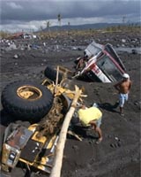 Legaspi (AFP) Dec 03, 2006 Philippines rescuers Sunday said the death toll from giant mudslides could pass 800 as emergency workers broke through to remote villages devastated by the disaster. As emergency workers and residents continued to dig bodies from the mud, local Red Cross officials said they had confirmed 406 deaths and another 398 missing. Senator Richard Gordon, the National Red Cross president, said the final toll could even outstrip 1,000 but the true figure would probably never be known. Many villages have not yet reported how many residents have died and in some cases, whole families had been buried by torrents of mud and ash triggered by super typhoon Durian, he said. "Many are saying the death toll could exceed 1,000," Gordon said. "People are telling us entire families and villages have disappeared." Hopes have faded of finding survivors after heavy rains created torrents of mud which engulfed villages on the slopes of the Mayon volcano late on Thursday. In a rare case, residents of the riverside town of Rawis used handtools in a desperate attempt to reach five college students they believed were trapped in a ruined dormitory. Gordon said in one funeral parlor, 40 bodies had gone unclaimed. "If they were unclaimed, it is likely their relatives were buried as well," he said. "At a certain point in time, we will just have to say, we cannot do anymore. We are not going to find any more (bodies)," Gordon added. The Red Cross said as many as 31 villages with some 14,871 residents were hit by the mudflows. In the eastern Bicol region over 500 villages and hamlets were affected by the storm with many of them still cut off and out of reach of the rescue teams. Power, communications and water still remained out of service in most of the region, further hampering rescue and relief efforts, as tales of tragedy and loss abounded. At a hospital here Legaspi, survivor Arthur Atierros, 37 tried to comfort his distraught wife Mercy, 35, whose leg was amputated after the wall of their home collapsed on her. Their nine-year-old daughter, Armira stood nearby, the only one of four children they were able to find after mud swamped their home. Atierros said he and his relatives carried his wife for eight hours on a makeshift stretcher to the hospital. Nearby, Adrian Bagasala was tending to his 29-year-old wife, Ivy, who also had to have her leg amputated when their home collapsed. Bagasala said he dug his seven-month pregnant wife out of the mud but the strain caused her to go into labor, giving birth prematurely. The infant died soon after birth. The disaster comes after some 30,000 people were evacuated from the slopes of Mayon amid signs that the volcano was erupting. However the residents were allowed to return home in September after Mayon simmered down.
