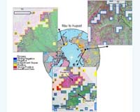 Falmouth MA (SPX) May 18, 2006 Using time series analyses of a 22-year record of satellite observations across the northern circumpolar high latitudes, scientists at the Woods Hole Research Center are assessing trends in vegetation photosynthetic activity. The results indicate that tundra areas consistently and predominantly show greening trends while forested areas show browning, indicating that the boreal forest biome might be responding to climate change in previously unexpected ways. This research is highlighted in the current issue of Earth Interactions. According to Andrew Bunn, lead author of the paper and a post-doctoral fellow at the Center, "This research suggests that the high latitudes might not be responding to climate change as previously thought. If the ability of boreal forests to capture and store carbon in a warmer world is not as great as we've previously supposed, then we will have to think differently about how the planet will respond to continuing emissions of carbon dioxide." All land surfaces above 50� N, excluding the glaciers of Greenland, were included in this study. Growing seasons were defined as May to August though early and late growing season periods were also considered. Three primary data sets derived from polar-orbiting satellites were used. Overall, tundra areas show marked greening over the entire growing season. These patterns were consistent with relatively simple climate response seen in related work in North America, where areas responded to summer maximum temperatures while the response of forest vegetation was more complex. Boreal forests patterns indicate significant greening in May and June, with gains offset by substantive browning in July and August. These results illustrate a need for an expanded observational network, additional analysis of existing data sets, including tree rings, and improvements in process models of ecosystem responses to climate change. According to Scott Goetz, a senior scientist at the Center and co-author of the paper, "This work extends our previous analyses by specifically considering issues of vegetation type and density over this vast region, as well as differences in seasonality of photosynthetic gains and losses. Rather than a systematic greening of high latitudes with warmer temperature, we are seeing a more nuanced and surprisingly rapid response to changes in climate. "What we'd like to know is whether these trends will continue to result in forest decline, exacerbating the impact of warming, or will the forests somehow be able to adapt? Models can tell us what is likely to occur, but we are most anxious to see what the satellite observations will reveal over the next few years." Dr. Bunn is an ecologist interested in understanding climate change impacts on the biosphere. He is particularly interested in understanding the natural range of climate variability over the last two thousand years using natural archives of past temperature and precipitation derived from tree rings. He was awarded a Canon National Parks Science Scholarship in 2001 for work combining tree rings, remote sensing, and computer simulations of high elevation forests in Sequoia National Park. He earned a master's degree from Duke University and a doctorate from Montana State University. Dr. Goetz works on the application of satellite imagery to analyses of environmental change, including monitoring and modeling links between land use change, forest productivity, biodiversity, climate, and human health. Before joining the Center, he was on the faculty at the University of Maryland for seven years, where he maintains an adjunct associate professor appointment, and was a research scientist at NASA's Goddard Space Flight Center. He received his Ph.D. from the University of Maryland. Community Email This Article Comment On This Article Related Links Woods Hole Research Center Climate Science News - Modeling, Mitigation Adaptation