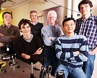 Los Angeles CA (SPX) Dec 09, 2005 A new series of publications in the journal Nature highlights the race among competing research groups toward the long-anticipated goal of quantum networking. In one of three papers published the journal's December 8 issue, a group of physicists from the Georgia Institute of Technology led by Professors Alex Kuzmich and Brian Kennedy describes the storage and retrieval of single photons transmitted between remote quantum memories composed of rubidium atoms. The work represents a significant step toward quantum communication and computation networks that would store and process information using both photons and atoms. But the researchers caution that even with their rudimentary network operation, practical applications for quantum networking remain a long way off. "The controlled transfer of single quanta between remote quantum memories is an important step toward distributed quantum networks," said Alex Kuzmich, the Cullen-Peck Assistant Professor in Georgia Tech's School of Physics. "But this is still a building block. It will take a lot of steps and several more years for this to happen in a practical way." Slightly more than a year ago in a paper published in the journal Science, Kuzmich and collaborator Dzmitry Matsukevich described transferring atomic state information from two different clouds of rubidium atoms onto a single photon. That work was the first time that quantum information had been transferred from matter to light. In the new paper in Nature, Kuzmich, Kennedy and collaborators Thierry Chaneliere, Dzmitry Matsukevich, Stewart Jenkins, Shau-Yu Lan carry the earlier operation one step farther by storing and retrieving single photons from clouds of ultra-cold rubidium atoms - demonstrating the storage of light-based information in matter. From an applications perspective, the storage and retrieval of a qubit state in an atomic quantum memory node is an important step towards a "quantum repeater." Such a device would be necessary for transmitting quantum information long distances through optical fibers. Existing telecommunications networks use classical light to transmit information through optical fibers. To carry information long distances, such signals must be periodically boosted by repeater stations that cannot be used for quantum networking. The Georgia Tech researchers began their experiment by exciting a cloud of rubidium atoms stored in a magneto-optical trap at temperatures approaching absolute zero. The excitation can generate a photon - but only infrequently, perhaps once every five seconds. Because it is in resonance with the atoms from which it was created, the photon carries specific quantum information about the excitation state of the atoms. The photon was sent down approximately 100 meters of optical fiber to a second very cold cloud of trapped rubidium atoms. The researchers controlled the velocity of the photon in the second cloud by an intense control laser beam. Once the photon was inside the cloud, the control beam was switched off, allowing the photon to come to a halt inside the dense ensemble of atoms. "The information from the photon is stored in the state of excitation of many atoms of the second ensemble," explained Jenkins, a graduate student who specializes in quantum optics theory. "Each atom in the ensemble is slightly flipped, so the atomic ensemble is sharing this information - which is really information about spin." After allowing the photon to be stored in the atomic cloud for time periods that exceeded 10 microseconds, the control beam was turned back on, allowing the photon to re-emerge from the atomic cloud. The researchers then compared the quantum information carried on the photon to verify that it matched the information carried into the cloud. "When the single photon is generated, the first atomic ensemble is in an excited state," explained Chaneliere, a postdoctoral fellow in the Kuzmich lab. "When we read the information from the second ensemble and find a coincidence between its excitation and the excitation of the first ensemble, we have demonstrated storage of the photon." To confirm the single photon character of the storage, the researchers used anti-correlation measurements involving three single photon detectors. Storage of the photon for even a brief period of time within the atomic ensemble depends on careful control of potentially-interfering magnetic fields. And it works only because the rubidium atoms are so cold that their motion is limited. "Quantum information is very fragile," said Chaneliere. "If you have a magnetic field, the atoms spin out of phase, and you can lose the information. For the moment, that is certainly a limitation on the use of this for quantum networking." For the future, the team hopes to add additional nodes to their rudimentary quantum network and encode useful information onto their photons. They must also increase the probability of creating single photons from the first atomic cloud. While gathering data, the researchers excited the first cloud of atoms approximately 200 times a second. A single photon was created about once every five seconds, reported Matsukevich, a graduate student in the Kuzmich lab. Highlighting the speed at which progress is being made toward quantum networking, Kuzmich, Kennedy and their team have more recently demonstrated entanglement between two atomic qubits separated by a distance of 5.5 meters. The work is described in a paper submitted to the journal Physical Review Letters. "This entanglement would be important to a number of applications, including quantum cryptography," said Kuzmich. "We have generated entanglement of atomic qubits. We also showed that we can take this entanglement and map it from atoms to photons." Research by Kuzmich, Kennedy and their colleagues has been supported by NASA, the Office of Naval Research Young Investigator Program, National Science Foundation, Research Corporation, Alfred P. Sloan Foun