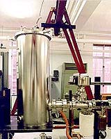 Huntsville - Sep 06, 2002 Scientists ponder the question, "What advances in power technology are required to send human and robotic explorers throughout the solar system?" Beyond all the planets in our solar system in a cold, dark, empty region of space, Voyager 1 continues its 25-year journey of exploration. It's headed for the heliopause, that boundary where the Sun's influence ends and the dark recesses of interstellar space begin. From where Voyager sits, the Sun is merely the brightest star in the sky--seven thousand times dimmer than we see it from Earth. Voyager doesn't have any solar panels; they wouldn't do any good so far from the Sun. The probe stays in touch by carrying its own power source, an early radioisotope thermoelectric generator (RTG), which converts the heat generated from the natural decay of its radioactive fuel into electricity. Its RTG will supply Voyager with electricity at least until 2020. Space probes that travel much beyond Mars need more power than solar cells can provide. Another example is the Ulysses spacecraft. It was launched in October 1990 from the space shuttle on a mission to study the Sun's poles. To get above the Sun, Ulysses had to fly around Jupiter and slingshot out of the plane of the planets. Near Jupiter, the Sun's rays are 25 times weaker than near Earth. Solar panels large enough to catch this weak energy would have weighed 1,200 pounds, doubling the weight of the spacecraft and making it too heavy for booster rockets from the shuttle. Instead, Ulysses was equipped with an RTG weighing only 124 pounds. It easily powers all the probe's onboard systems, including navigation, communication and scientific instruments. A probe like Ulysses needs a couple hundred watts of power to operate onboard systems. For comparison, the shuttle's onboard systems use 5 to 10 kilowatts (kW) of power, 50 times that. The International Space Station (ISS) uses 10 times more, or about 100 kW for onboard systems. The ISS never leaves Earth orbit, which reduces the power it needs. Human missions beyond Earth's neighborhood, however, will require power not only for onboard systems, but also for propulsion and for systems to support humans when they arrive wherever they're going. "To pursue ambitious human missions across the solar system, perhaps returning to the Moon, perhaps going on to Mars, will require hundreds to a thousand kilowatts on the surface and hundreds to thousands of kilowatts for transportation systems," says John Mankins, chief technologist for the Advance Systems Program at NASA headquarters. You can't just plug into the nearest electrical outlet, he added. You have to bring your own power source. Ideally, you'd like to find something that could provide power for both propulsion and operations. Since Robert Goddard's first test launch of a rocket in 1916, space missions have used chemicals to get the acceleration needed to escape Earth's gravity. A rocket's 5- to 15-minute burn sends the spacecraft towards its destination; then it coasts the rest of the way unless it uses the gravity of other planets for an additional boost. For Voyager, it took years to reach Saturn and then the spacecraft was only able to spend days in the Saturn system and only hours near the planet itself. Mission planners would like to do better in the future. From the perspective of the Exploration Office at the Johnson Space Center, Jeff George sees "an evolving family of related power and propulsion technologies" for the next wave of human exploration. The first likely candidate is electric propulsion (EP). You don't need as much thrust in space as you do to escape Earth's gravity, explains George, but you do need to produce thrust using very little fuel because of weight restrictions. Electric propulsion could provide fuel-efficient thrust after an initial chemical boost into space. Specific impulse--that is, the pounds of thrust produced per pound of propellant used per second--is a measure of the efficiency with which a system uses fuel to produce thrust. Higher is better. The space shuttle, which stays near Earth, uses chemical propulsion with a specific impulse of 450-460 seconds or 450 pounds of thrust for a pound of propellant per second. EP has 10 times the specific impulse of chemical propulsion and potentially can go as high as 10,000 seconds. EP got its first try in 1999 on Deep Space 1--a spacecraft that tested many new technologies before it flew by comet Borrelly in 2001. Deep Space 1 needed 2.6 kW to power both its electric ion propulsion drive (pictured left) and other onboard systems. The energy came from an innovative collector consisting of advanced solar cells and a lens to concentrate sunlight on the panels. Together they achieved a 23% efficiency in converting sunlight to electricity compared with 14% efficiency for the solar arrays on the ISS. Building on the success of Deep Space 1, a new mission named "Dawn" will leave Earth in 2006. Propelled by an ion engine with a specific impulse of 3100 seconds, Dawn will travel to Ceres and Vesta, two of the biggest asteroids in the solar system. Although Ceres and Vesta lie farther from the Sun than Mars does, the spacecraft will be able to draw all the power it needs from 7.5 kW solar arrays. Manned missions need more power. "The next step for a [human-crewed] Mars mission," says Jeff George, "is to step up to 5-10 megawatts of nuclear power and then scale up the electric thrusters to megawatts per engine." Going from kilowatts to megawatts is not a simple problem. NASA is now working on a 5-10 kW next-generation ion propulsion system. George envisions small, nuclear-electric vehicles of 100-200 kW exploring the outer planets as a pilot version of the megawatt scale they'd like to use for human exploration. To run a megawatt EP system, you need a source with both high energy and high power. As John Cole, manager of the Revolutionary Propulsion Research Project Office explained, "Energy is the most importa