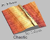 West Lafayette IN (SPX) Jan 20, 2006 Mechanical engineers at Purdue University have proven that the same sort of "deterministic chaos" behind the baffling uncertainties of the stock market and long-term weather conditions also interferes with measurements taken with a commonly used scientific instrument. "The idea that chaos interferes with measurements in atomic-force microscopy has been sort of an urban myth over the years, but we have now proven this to be a fact," said Arvind Raman, an associate professor of mechanical engineering. The findings will be detailed in a paper to appear online on Jan. 20 in the journal Physical Review Letters. The paper was written by mechanical engineering doctoral student Shuiqing Hu and Raman. The engineers also have shown through a series of experiments precisely how much error is caused by the effects of chaos, information that could be used to help researchers make more accurate measurements with atomic-force microscopes. Atomic-force microscopes are instruments used to take three-dimensional images of tiny structures for research and industry in fields such as nanotechnology, electronics, telecommunications and biotechnology. Researchers use the instruments to determine the features of objects and materials on the scale of nanometers, or billionths of a meter. The method works by passing a tiny cone-shaped tip close to the surface of an object, tracing its features. The tip is attached to a device called a "microcantilever," which resembles a diving board with the tip attached to the free end. The cantilever is caused to oscillate by the vibrating motion of a "piezoelectric crystal" that moves when voltage is applied to it. The force exerted by the crystal can be adjusted to increase and decrease how much the tip oscillates. The greater the vibration, the larger the "amplitude," or how far the tip moves each time it swings toward and away from the surface of the object being measured. As the cantilever tip oscillates up and down, its motion is influenced by forces, including van der Waals' forces, which exist between atoms. The van der Waals' forces become stronger as the tip gets closer to the surface. Information about the strength of the atomic force reveals how close the tip is to the surface of the object being studied. Researchers use this atomic-force information to position the tip extremely close to the surface. Then, as the tip scans the surface and encounters changes in contour, the entire microcantilever assembly tracks up and down to keep the tip's oscillating amplitude the same. The changing position of the cantilever is carefully monitored to reveal the topology of the surface of the object, yielding an image. This method for using the microscope is commonly referred to by researchers as the "tapping mode." "For the method to work properly and yield accurate images that show features on the scale of nanometers, the microcantilever tip should always oscillate the same way, nice and smoothly like clockwork," Raman said. "But sometimes the tip suddenly begins oscillating chaotically, producing errors in the measurements." Until now, researchers did not know why under certain operating conditions nanoscale features appear "noisy" and erroneous. Hu increased the driving force of the piezoelectric crystal while the microscope was operating in the tapping mode to deliberately produce chaos. The research showed that increasing the amplitude of the microcanteliver by a specific amount resulted abruptly in chaotic oscillations. When Hu increased the amplitude again slightly, the oscillations returned to a normal, smooth motion. Increasing the amplitude further again resulted in chaos. The experiments were conducted under various conditions, including inside an airtight chamber filled with pure nitrogen, eliminating water vapor, which could taint the results. Hu also analyzed data to detect chaotic behavior by using the same kinds of sophisticated software algorithms commonly used to identify chaotic patterns in the stock market. "This is the first experimental proof that under some reasonable operating conditions these cantilevers can oscillate chaotically," Raman said. "We are not claiming that our findings answer all of the questions about what causes the chaotic behavior in atomic-force microscopy. There could be additional reasons for the chaotic behavior." The errors resulting from chaos cause measurements to be off by only a few nanometers. "We end this paper by saying that maybe this amount of error is negligible by today's standards because the average atomic-force microscope user is not measuring features as small as one or two nanometers," Raman said. "They are making measurements on the scale of about 1,500 nanometers, so if you are off by a couple of nanometers, no big deal. "But some researchers are pushing the technology and trying to measure very carefully on the scale of two or three nanometers. Certainly, in the future, more and more scientists and engineers will be making measurements at this scale and the errors caused by chaos will no longer be negligible. These findings will be helpful in preventing chaos and reducing the errors." The findings also identify which types of cantilevers are most prone to chaos, depending on what they are made of and how stiff they are. "Two major practical results are that we now know what kinds of cantilevers to choose to avoid chaos, and we know the range of amplitudes that result in chaos." Another important revelation, Raman said, is that the form of chaos observed is in the "deterministic" world of ordinary physics that governs everything from a baseball's trajectory to the motion of planets. Researchers had thought the microscope's sudden aberrant behavior might be caused by exotic forces associated with quantum mechanics, which describes the abstract inner workings of atoms. Chaos usually is observed in large-scale phenomena, such as long-term weather conditions, the motion of objects 