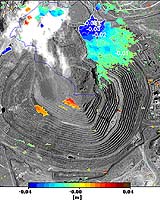 Palabora, South Africa (ESA) Jan 5, 2006 International engineering firm AMEC is working with ESA to improve monitoring of ground subsidence linked to mining activity. Radar satellites in orbit 800 kilometres away can reveal millimetre-scale elevation shifts across wide areas of land. The largest man-made hole in Africa is located 360 kilometres north-east of South African capital, Pretoria. The Palabora copper mine was excavated open-cast for 38 years: the end-result is easily visible from space: a yawning pit approaching 2000 metres in diameter and 762 metres deep (more than 230 metres beneath sea level). In 2002 owner Rio Tinto declared the pit's depth meant surface extraction was now uneconomic, instead developing an underground mine to work the copper ore beneath the pit bottom. The decision was good news for the regional economy, as it should extend the life of the mine and associated copper smelter and refinery by at least another 20 years. Mining at Palabora uses a highly-efficient method called 'block caving'. It is based on extracting thin blocks of rock to induce large-scale cave-ins in overhanging ore. However, even though the excavations are being carried out more than a kilometre underground, last year they induced dramatic surface instabilities. More than 60 million tonnes of mass collapsed into the pit from its north wall, with movements of up to two metres in the vicinity and cracking as far as 300 metres away from the pit rim. Rio Tinto was concerned that further subsidence might threaten mine infrastructure on the pit's east rim. AMEC's Earth & Environmental Division were called in to evaluate the threat posed - who then turned to an innovative deformation-measuring method based on imagery from radar satellites flown by ESA and the Canadian Space Agency (CSA). AMEC is working within the ESA Earth Observation Market Development (EOMD) programme to evaluate the commercial possibilities of a technique known as Synthetic Aperture Radar Interferometry (InSAR). Through InSAR, multiple satellite radar images of the same site - acquired from as near as possible to the same point in space though at different times - can be combined together to highlight slight changes in surface elevation that occurred between the image acquisitions. Think of it as a space-based version of 'spot-the-difference', which sees down to a few millimetres. Even the tiniest vertical surface shift changes the distance it takes for the radar signal to travel down to the surface of the Earth and back to the satellite, and so alters the phase of the signal. Just like sets of ripples meeting in water, the combination of radar signals that have different phases sets up interference patterns � so these combined images are known as 'interferograms'. Such interference 'fringes' can be thought of as resembling contour lines, but on vastly reduced scales. Once topographic and atmospheric effects are accounted for, the fringes remaining on an interferogram can be used to precisely measure the extent of any ground shifting over the entire area covered � usually tens of kilometres across. "While traditional survey techniques and geotechnical instrumentation can provide detailed information at specific points of interest, InSAR provides continuous data coverage over large areas to sub-centimetre accuracy within a particular timeframe of interest," said Stu Anderson, AMEC Project Manager. "These data are often available back to the early 1990s for many locations." For this mining problem at Palabora, AMEC sat down with Rio Tinto and together they designed test cases to see what InSAR could deliver and how it could be used by Rio Tinto. Various SAR images were acquired for two consecutive 24-day periods in 2004. The news turned out to be good: the affected area was restricted to the northeast sector of the pit, away from the east-side infrastructure, and the size and magnitude of the deformations was reducing. During the first period the maximum measurable subsidence was found to be five centimetres nearest the large north wall failure, tapering to zero in the east. During the second period the maximum value was two centimetres, and the affected area was reduced, with the east wall again proving unaffected. Based on the products developed during this investigation, InSAR will also be performed over Palabora to serve as a means of early warning of future subsidence. Regulators typically compel most mining companies to regularly check for deformation. In a bid to see if InSAR can bring benefit to other companies in the mining industry, AMEC has been consulting with more of its extensive list of clients. To this end, AMEC also completed satellite-based subsidence tests over Germany's Bad Reichenhall salt mine on behalf of owners S�dsalz, a slip-prone mine waste rock dump at the closed Hayden Hill gold and silver mine in northeast California in the US for the company Kinross Gold and the closed Hollinger gold mine near Timmins in Ontario, Canada, for Placer Dome. In this case, an extension of the InSAR method, based on historical available satellite data such as the 14-year archive from ESA's ERS archive, was utilised. Known as Coherent Target Monitoring (CTM), this method provides detailed quantification of land motion. Results were compared to in-house survey findings, with promising results. For Hollinger Mine, AMEC employed satellite data between 1992 and 2003 to detect subsidence in the range of 25 to 55 millimetres within an area previously identified as stable using traditional geological instrumentation and survey techniques, showing that CTM provides additional insight into deformation occurring in the vicinity. "Another advantage of using SAR interferometry is that it is not dependent on sending crews into the field," commented Timothy Conley, Vice President and Managing Director of AMEC's Earth & Environmental operations in Europe. "It is therefore valuable for acquiring information at remote sites or areas