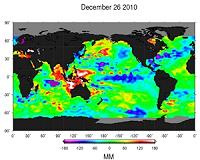 New NASA satellite data indicate the current La Nina event in the eastern Pacific has remained strong during November and December 2010. A new Ocean Surface Topography Mission (OSTM)/Jason-2 satellite image of the Pacific Ocean that averaged 10 days of data was just released from NASA. The image, centered on Dec. 26, 2010, was created at NASA's Jet Propulsion Laboratory (JPL), Pasadena, Ca ... read more