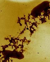 Amherst MA (SPX) Jul 01, 2005 Researchers at the University of Massachusetts Amherst have discovered a tiny biological structure that is highly electrically conductive. This breakthrough helps describe how microorganisms can clean up groundwater and produce electricity from renewable resources. It may also have applications in the emerging field of nanotechnology, which develops advanced materials and devices in extremely small dimensions. The findings of microbiologist Derek R. Lovley's research team are published in the June 23rd issue of Nature, an international science journal. Researchers found that the conductive structures, known as "microbial nanowires," are produced by a novel microorganism known as Geobacter. The nanowires are incredibly fine, only 3-5 nanometers in width (20,000 times finer than a human hair), but quite durable and more than a thousand times long as they are wide. "Such long, thin conductive structures are unprecedented in biology," said Lovley. "This completely changes our concept of how microorganisms can handle electrons, and it also seems likely that microbial nanowires could be useful materials for the development of extremely small electronic devices." "The microbial world never stops surprising us," said Dr. Aristides Patrinos of the U.S. Department of Energy, which funds the Geobacter research. "The remarkable and unexpected discovery of microbial structures comprising microbial nanowires that may enable a microbial community in a contaminated waste site to form mini-power grids could provide new approaches to using microbes to assist in the remediation of DOE waste sites; to support the operation of mini-environmental sensors, and to nano-manufacture in novel biological ways. This discovery also illustrates the continuing relevance of the physical sciences to today's biological investigations." Eugene Madsen, a Cornell University research microbiologist, noted, "I have watched and judged, in peer review, many of Dr. Lovley's remarkable scientific advancements since the discovery of Geobacter in 1987. The latest advancement, microbial nanowires, is another major milestone because it may usher in a new era of exploration of both microbial respiration and bio-electronics." The findings, he said, are "promising and exciting," although he emphasized the information must be independently confirmed and extended by other microbiologists and biophysicists. Geobacter are the subject of intense investigation because they are useful agents in the bioremediation of groundwater contaminated with pollutants such as toxic and radioactive metals or petroleum. They also have the ability to convert human and animal wastes or renewable biomass into electricity. To carry out these processes, Geobacter must transfer electrons outside the cell onto metals or electrodes. This new research provides an explanation of how this can happen. Previous studies in Lovley's laboratory demonstrated that Geobacter produces fine, hairlike structures, known as pili, on just one side of the cell. Lovley's team speculated that the pili might be miniature wires extending from the cell that would permit Geobacter to carry out its unique ability to transfer electrons outside the cell onto metals and electrodes. This was confirmed in a study in which microbiologist Gemma Ruegera teamed with physicists Mark T. Tuominen and Kevin D. McCarthy to probe the pili with an atomic force microscope. They found the pili were highly conductive. Furthermore, when Geobacter was genetically modified to prevent it from producing pili, Geobacter could no longer transfer electrons. "These results help us understand how Geobacter can live in environments that lack oxygen and carry out such unique phenomena as removing organic and metal pollution from groundwater," Lovley said. Geobacter can live in the absence of oxygen because of its ability to transfer electrons outside the cell onto iron minerals, which are natural constituents of most soils. However, prior to the discovery of its conductive pili it was unknown how this electron transfer might take place. The conductive pili that Geobacter produces may have a variety of applications for the electronics industry. Ultrafine wires, often referred to as nanowires, are required for further miniaturization of electronic devices. Manufacturing nanowires from more traditional materials such as metals, silica, or carbon is difficult and expensive. However, it is easy to grow billions of Geobacter cells in the laboratory and harvest the microbial nanowires that they produce. Furthermore, by altering the DNA sequence of the genes that encode for microbial nanowires, it may be possible to produce nanowires with different properties and functions. Another interesting implication of this research is that it suggests a mechanism for microbes to share energy in a mini-power grid. The nanowire pili of individual Geobacter often intertwine, suggesting a strategy by which Geobacter might share electricity. Geobacter was discovered by Lovley in 1987 at the muddy bottom of the Potomac River in Washington D.C., and over the past 18 years his research has earned widespread media attention and major funding from government and private sources. The tiny organisms, widely found in soils and aquatic sediments, have demonstrated promise as cleaners of toxic spills and generators of energy. They are anaerobic bacteria (living without oxygen) that use metals to gain energy the way humans and other organisms use oxygen. They are distributed throughout the world in a wide variety of soils and sediments. Geobacter have been used to help remove contaminants from underground petroleum spills and landfill pollution of groundwater, as well as remove uranium from contaminated groundwater at a number of U.S. Department of Energy sites. The title of the paper published in Nature is "Extracellular Electron Transfer Via Microbial Nanowires." The authors are Derek R. Lovley, Gemma Reguera, Teena Mehta 