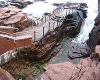 Washington (AFP) Aug 23, 2009 A group of sightseers were swept into the Atlantic Ocean off Maine on Sunday by a rogue wave that hit the scenic cliff overlook where they were watching high surf thrown up by Hurricane Bill. Rescue operations recovered all of the 20 tourists who were washed into the sea from the Acadia National Park site, and several were evacuated to a local hospital suffering from broken bones and back injuries, a park official said. "We had several thousand people lining what we call Ocean Drive inside Acadia National Park watching the waves that were unusually big," the park's superintendent Sheridan Steele told CNN. Coastguard spokesman Petty Officer James Rhodes told AFP that nine people were taken to hospital and three more were pulled from the water. Both Steele and Rhodes initially said two or three sightseers were unaccounted for after the accident, but by 7:00 pm (2300 GMT) the park's carpark had emptied out and the missing persons reports were rescinded. "We have closed the search because we believe that every one has been accounted for," Rhodes told AFP. The accident happened at a cliff overlooking the Atlantic Ocean known as Thunder Hole. The site is known for the huge waves that crash against the cliff, throwing up scenic spray. But Rhodes said the wave that swept onlookers into the ocean was likely associated with Hurricane Bill, which caused high tides and surf along the US east coast as it headed towards Canada. "It looks like it's with the weather, with the hurricane and everything," Rhodes said. "Due to the hurricane coming through we have had reports of rough waves." In its latest advisory, the National Hurricane Center said Bill was continuing to weaken as it passed Canada's east coast. The storm, which is the first hurricane of this year's Atlantic storm season, was headed for Newfoundland with winds of 75 miles (95 kilometers) per hour. Steele said high waves of the type that hit Thunder Hole were not unusual and that park officials had tried to warn onlookers to be careful. "I've seen other storm surges like this. They're quite dramatic," he said. "Even though we try to warn people and try to get people to watch from a safe distance, we weren't able to contact everybody in time."