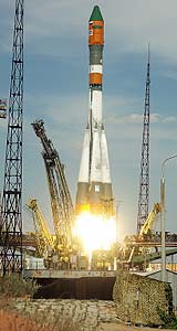 Moscow (RIA Novosti) Sep 15, 2006 A medium-class Soyuz-U carrier rocket has put a Cosmos satellite into orbit after being launched from the Baikonur space center in Kazakhstan Thursday, a spokesman for Russia's Space Forces said. Alexei Kuznetsov said the satellite would enlarge the orbital military group. He said the satellite had been put into orbit at 5:39 p.m. Moscow time [1:39 p.m. GMT] adding that all "systems were functioning properly."