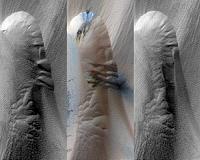 Northern Mars Landscape Actively ChangingWashington DC (SPX) Feb 07, 2011 Sand dunes in a vast area of northern Mars long thought to be frozen in time are changing with both sudden and gradual motions, according to research using images from a NASA orbiter. These dune fields cover an area the size of Texas in a band around the planet at the edge of Mars' north polar cap. The new findings suggest they are among the most active landscapes on Mars. However, f ... read more |
