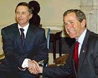 Washington (AFP) Mar 12, 2002 Russian Defense Minister Sergei Ivanov met with US President George W. Bush Tuesday in hopes of soothing tensions over nuclear arms cuts and the war on terrorism ahead of a May 23-26 Russo-US summit. After meeting with Bush and the US leader's national security advisor, Condoleezza Rice, Ivanov -- who met earlier with US Defense Secretary Donald Rumsfeld -- described the talks as "rather warm and very productive." "We have discussed a broad range of issues, going from the reduction of offensive strategic nuclear arms to terrorism, non-proliferation, economic cooperation, and the issue of power or energy," Ivanov told reporters. The Russian official also said Bush had promised Moscow's worries about Washington's plans to send military trainers to the former Soviet republic of Georgia to help battle terrorism would be "taken into account." "We also discussed the issue of Georgia, because we still see that terrorists and criminals are present in the territory of that country, and as I understood the president assured me that all those Russian problems could not be resolved unless the Russian interests are taken into account," he said. Regarding Moscow's ties with the NATO alliance formed to counter the Soviet Union, Bush "has assured me that there is still a great interest in forging those new relationships and maintaining that cooperation," said Ivanov, who was also expected to meet with US Secretary of State Colin Powell during his stay. The visiting official said talks at the White House did not cover one of the most contentious issues marring Russo-US relations: media reports that US nuclear policy includes contingency plans for making Russia a target. But Ivanov said he and Rumsfeld had a "very long and very detailed discussion" about the reports and would discuss the matter publicly at a joint press conference set for Wednesday. The Los Angeles Times recently reported that following a secret review of the US nuclear posture, the Bush administration ordered the Pentagon to draw up contingency plans for the use of nuclear weapons against a wide range of countries and in a variety of scenarios. The countries included not only Russia, China and the states Bush called the "axis of evil" -- Iraq, Iran and North Korea -- but also Libya and Syria, according to the report, which prompted demands for clarification from Moscow and Beijing. Pentagon spokeswoman Victoria Clarke said the review was "not a targeting document of any kind" but reflected the changing nature of the threat with the end of the Cold War and the proliferation of weapons of mass destruction. "It is hardly likely that we face an all-out nuclear attack by the Soviet Union. It is more likely that we have to face very real and growing and changing threats of weapons of mass destruction from a variety of places," she said. Ivanov did not give details of talks with Bush on reductions in offensive nuclear weapons, which the US leader and Russian President Vladimir Putin agreed to at a November summit in Washington and at Bush's Texas ranch. The two leaders called for reductions in nuclear weapons to 2,200 to 1,700 warheads over the next ten years at their last summit in November, but both sides have so far been unable to agree on how to put it in writing. Russia also has raised objections to a US plan to store some of those warheads rather than destroy them. Community Email This Article Comment On This Article Related Links SpaceDaily Search SpaceDaily Subscribe To SpaceDaily Express Learn about nuclear weapons doctrine and defense at SpaceWar.com Learn about missile defense at SpaceWar.com All about missiles at SpaceWar.com Learn about the Superpowers of the 21st Century at SpaceWar.com
