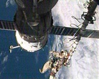 Houston TX (SPX) Jul 11, 2008 International Space Station Commander Sergei Volkov and Flight Engineer Oleg Kononenko began a spacewalk at 2:48 p.m. EDT Thursday to inspect and retrieve an explosive bolt from their Soyuz TMA-12. The bolt will be returned to Earth for examination. The spacewalk comes in the wake of two consecutive ballistic entries by the previous Soyuz spacecraft, entries that resulted in high-G rides for the crews and landings hundreds of miles short of the planned recovery area. Russian engineers say they have evidence that failed explosive bolts that help separate two modules likely are responsible. The spacewalk is expected to last about six hours. It focuses on the area between the Soyuz return and propulsion modules. Volkov and Kononenko leave the Pirs docking compartment and move to the Strela hand-powered crane mounted nearby. Volkov, wearing the red-striped Orlan spacesuit and designated EV1, and Kononenko mount a foot restraint on the end of Strela. Kononenko, EV2 in the blue-striped suit, gets into the foot restraint and Volkov maneuvers him to the Soyuz, docked to the Earth-facing port on Pirs. After installing covers to protect nearby thrusters, Kononenko cuts and secures insulation and inspects and photographs the area. Then Volkov moves along the Strela to join Kononenko, who installs a handrail on the Soyuz and a cover to protect fluid lines. Volkov cuts a wire tie between adjacent pyrotechnic bolts in the suspect position and demates an electrical connector. Next he unscrews and retrieves the pyro bolt and stows it in a protective cylindrical case. He reinstalls the insulation cover and removes the thruster covers, taking photos after each step. Kononenko and Volkov move back to the Strela controls and both maneuver the crane back to its stowage position on Pirs. They stow a bag with the blast-proof container holding the pyro bolt in the airlock. If time permits, they install a docking target on the space-facing side of the Zvezda service module. It will help with the docking of a Russian mini-research module atop Zvezda. The module will be delivered on a future mission. The cosmonauts return to Pirs, enter the airlock and close the hatch. Flight Engineer Greg Chamitoff remains in the Soyuz during the spacewalk, part of contingency preparations for the unlikely event the Pirs airlock cannot be repressurized. Volkov and Kononenko will conduct another spacewalk July 15 to outfit the Russian segment's exterior and install a scientific experiment and retrieve another. Community Email This Article Comment On This Article Share This Article With Planet Earth
