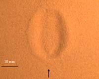 Paris, France (ESA) Sep 12, 2006 Laboratory simulations of the SMART-1 impact performed at the University of Kent, United Kingdom, suggest that the impact may have caused a clearly elongated lunar crater, and produced a high-speed rebounding for the spacecraft. This may help explain some properties of the dust cloud observed just after the actual impact of SMART-1 on the Moon. The simulations were performed by M.J. Burchell and M.J.Cole at the University of Kent. For the test, they used a high-speed, two-stage light gas gun to shoot at 2 kilometres per second a 2-millimitre aluminium sphere that simulated the SMART-1 spacecraft. The target was a tray of sand, similar to lunar soil. "We called for such laboratory simulations and numerical modelling of the SMART-1 impact as a crucial test to understand the processes at work in space-bound and artificial impacts," said Bernard Foing, ESA SMART-1 Project Scientist. Data from a previous project, in which Burchell and Cole made use of coarse grained sand, had shown that for an impact at a 10-degree incidence the fastest ejected material travelled forward (within about plus or minus 5 degree angle with respect to the impact direction) at 120 percent of the impact speed - a higher value than the impacting projectile had. However, at that 10-degree incidence angle only one percent of the material excavated by the impact went forwards and the percentage decreased as the angle got shallower. Out of that one percent, about 75 percent was at an angle to the surface greater than 10 degrees. "To reproduce the SMART-1 scenario we simulated an impact at two degrees incidence. The result was a nice non-circular crater," said Mark Burchell. "According to the test's results, the fine grained dust of the lunar surface was to raise a cloud of ejected material, which would have spread out sideways, as well as in a forward direction." Based solely on the results and ignoring scaling issues, Burchell and Cole predicted the size for the SMART-1 impact crater, expected to be 7 metres long and 4.5 metres wide. This was compatible with ESA's scaling-law predictions on the size of the SMART-1 crater. Burchell and Cole also observed a 'ricochet-projectile' phenomenon, suggesting a bounce like that of a single object that had undergone some deformation, with a slight 20 percent loss of speed during the impact. "Based on the latest topography analysis, SMART-1 touched down with a very grazing incidence not higher than a few degrees," said Foing. "Therefore it might have bounced in a similar way to the flying bullet in the sand box, like a stone skipping on water." "The result of these simulations may explain some of the properties of the clouds detected by the Canada-France-Hawaii telescope (CFHT) up to 100 seconds after the flash," added Pascale Ehrenfreund, coordinator of the SMART-1 impact ground-based observation campaign. "These were spread at some tens of kilometres downstream from impact," she concluded. Community Email This Article Comment On This Article Related Links SMART-1 Lunar Dreams and more Mars News and Information at MarsDaily.com Lunar Dreams and more