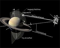 Munster, Germany (SPX) Sep 24, 2008 Observations from NASA's Cassini spacecraft have been used to build, for the first time, a 3-D picture of the sources of intense radio emissions in Saturn's magnetic field, known as the Saturn Kilometric Radiation (SKR). The results will be presented by Dr Baptist Cecconi, of LESIA, Observatoire de Paris, at the European Planetary Science Congress on Tuesday 23rd September. The SKR radio emissions are generated by high-energy electrons spiralling around magnetic field lines threaded through Saturn's auroras. Previous Cassini observations have shown that the SKR is closely correlated with the intensity of Saturn's UV aurora and the pressure of the solar wind. The measurements were made using Cassini's Radio and Plasma Wave Science (RPWS) experiment. "The animation shows radio sources clustered around curving magnetic field lines. Because the radio signals are beamed out from the source in a cone-shape, we can only detect the sources as Cassini flies through the cone. When Cassini flies at high altitudes over the ring planes, we see the sources clearly clustered around one or two field lines. However, at low latitudes we get more refraction and so the sources appear to be scattered," said Dr Cecconi. The model found that the active magnetic field lines could be traced back to near-polar latitudes degrees in both the northern and southern hemisphere. This matches well with the location of Saturn's UV aurora. "For the purposes of the model, we've imagined a screen that cuts through the middle of Saturn, set up at right-angles to the line between Cassini and the centre of the planet. We've mapped the footprints of the radio sources projected onto the screen, which tilts as Cassini moves along its orbital path and its orientation with respect to Saturn changes. We've also traced the footprints of the magnetic field lines back to the cloud tops of Saturn," said Dr Cecconi. Although there were some minor differences between emissions in the northern and southern hemispheres, the emissions were strongest in the western part of Saturn's sunlit hemisphere. This area corresponds to a region of Saturn's magnetopause where electrons are thought to be accelerated by the interaction of the solar wind and Saturn's magnetic field. The observations were made over a 24-hour period during Cassini's flyby of Saturn on 25-26th September 2006. This flyby was chosen because Cassini would approach from the southern hemisphere and swoop out from the northern hemisphere, allowing the instruments to take measurements from about 30 degrees below to about 30 degrees above the equatorial plane. Community Email This Article Comment On This Article Share This Article With Planet Earth