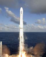 Long Beach CA (SPX) Aug 23, 2006 Sea Launch Company has successfully delivered the Koreasat 5 communications satellite to geosynchronous transfer orbit (GTO). Early data indicate the spacecraft is accurately positioned and in excellent condition. A Zenit-3SL vehicle lifted off at 8:27 pm PDT (03:27 GMT, Aug. 22) from the Odyssey Launch Platform, positioned at 154 degrees West Longitude in the equatorial Pacific. All systems performed nominally throughout flight. The Block DM upper stage inserted the 4,448 kg (9,806 lb) Spacebus 4000 C1 platform to GTO, on its way to a final orbital position of 113 degrees East Longitude. A ground station at Fucino, Italy, acquired the first signal from the satellite shortly after spacecraft separation. Built by Alcatel Alenia Space for the KT Corporation and Korea's Agency for Defense Development, the hybrid multi-band satellite will be part of South Korea's new high-capacity Spacecom System over the Asia-Pacific. This is Sea Launch's fourth successful mission of 2006 - two additional missions are planned for this year. Following the completion of the Koreasat 5 mission, Rob Peckham, president and general manager of Sea Launch, congratulated the Agency for Defense Development, KT Corporation and Alcatel Alenia Space. "We take great pride in successfully delivering South Korea's first dual-use spacecraft," he said. "At Sea Launch, we strive to exceed our customers' expectations and build collaborative relationships built on honesty and trust." "I want to extend our thanks to everyone involved in achieving this milestone event. In particular, I want to thank our partners and contractors and the entire Sea Launch team for continuing to build our legacy, one successful launch, one satisfied customer at a time." Community Email This Article Comment On This Article Related Links Sea Launch Launch Pad at Space-Travel.com