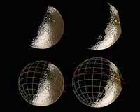Pasadena CA (JPL) Dec 09, 2004 Never-before-seen features on the Saturn-facing part of Iapetus' bright trailing hemisphere are visible for the first time, including many dark spots, and a sharper view of a dark, circular structure that was first seen at very low resolution by NASA's Voyager 1 in 1980. Iapetus diameter is 1,436 kilometers (892 miles). The image shows mainly the night side of Iapetus; part of the far brighter sunlit side appears at the right and is overexposed due to the long integration time of 180 seconds. Despite this long exposure time, almost no blurring due to the spacecraft's motion is apparent. This technique for imaging the night side of Iapetus will be used again during a flyby on Jan. 1, 2005, when Cassini will pass 13 times closer to the icy moon. The image was taken in visible light with the Cassini spacecraft narrow angle camera on Oct. 22, 2004, at a distance of 1.6 million kilometers (994,000 miles) from Iapetus, and from a Sun-Iapetus-spacecraft, or phase, angle of 161 degrees. The view is centered on 0.4 degrees north latitude, 317 degrees west longitude on Iapetus. The image scale is 9.4 kilometers (5.8 miles) per pixel.