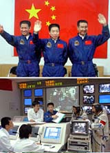 Hong Kong, China (SPX) Oct 06, 2005 The Shenzhou-6 mission is in final preparation with the integration of the spacecraft to its launcher this week at the launch site, and the expected arrival of the six-crew candidates from Beijing. As most people in China still enjoy the weeklong holiday following National Day celebrations on Oct. 1, personnel at JSLC only got a little time off from their busy prelaunch work schedule. Rollout of the CZ-2F launcher, with Shenzhou-6 on board, will take place shortly after the end of the weeklong holiday ending Oct. 7, Wen Wei Po said on Sept. 29. Liftoff of the much-anticipated Shenzhou-6 mission (SZ-6, Shenzhou means "Divine Vessel" or "Magic Vessel") would take place no earlier than October 13, according to Wen Wei Po who first reported the possible launch date on Sept. 25. Other Chinese media reports have since widely quoted the launch date. The Hong Kong-based pro-Beijing newspaper said that "relevant departments are preparing for a launch on October 13", the opening of the launch window, but could delay the liftoff "based on the situation at the [launch] site". This includes the workflow of the launch preparation, and weather conditions there and downrange. Aerospace experts also told the newspaper that the launch of SZ-6 was originally planned for last year. But officials postponed it to this year to "better prepare the mission". China launched its first yuhangyuan ("astronaut") Yang Liwei on the historic SZ-5 mission atop the Changzheng-2F (Long March-2F) launcher from the Jiuquan Satellite Launch Centre (JSLC) in Inner Mongolia on October 15, 2003 at 9 a.m. Beijing Time (0100 UTC). The mission ended with a successful landing in Inner Mongolia the following day at 6:23 a.m. Beijing Time (2223 UTC October 15), 21 hours 23 minutes after the liftoff. The successful mission earned China the elite status of being the third nation to launch its own people into space. Wen Wei Po also quoted eyewitnesses at JSLC as saying that SZ-6 looked similar to SZ-5, except that a "transition segment" was visible at the top of the SZ-6 stack, attached to one end of the Orbital Module. The newspaper said that after separating from the Descent Module at the end of the nominal mission, the Orbital Module would remain in space for an extended mission to further carry out a series of science experiments. The Orbital Module "could also serve as a target space vehicle for future docking". It is not clear if the SZ-6 Orbital Module would indeed be used as a docking target for SZ-7. On Aug. 10 Yang Liwei said at a news conference in Fuzhou, capital of Fujian Province, that the SZ-9 mission would be the first attempt to perform an orbital docking with the SZ-8 Orbital Module. He said that SZ-7, which had been proposed for a 2007 launch, would see the first extravehicular activity.