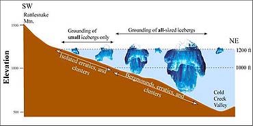 Seattle - Nov 04, 2003 Geologists have uncovered a scene in the Pasco Basin west of the Columbia River that shows how boulders piggybacked icebergs from what is now Montana and came to rest at elevations as high as 1,200 feet. Although glacial deposits of rocks and boulders are common, especially in the upper Midwest, "There probably isn't anyplace else in the world where there are so many rocks that rafted in on icebergs," said Bruce Bjornstad, a geologist at the Department of Energy's Pacific Northwest National Laboratory in Richland, Wash. The rocks were left after ice dams holding back a huge lake near Missoula, Mont., broke, re-formed and broke again from 1 million to 2 million years ago to as recently as 13,000 years ago. The floodwaters backed up at the downstream end of the Pasco Basin behind Wallula Gap, a narrow ridge opening through which the Columbia River flows today. The lake lapped the gentle slope of Rattlesnake Mountain, northwest of the gap and part of the Hanford Reach National Monument in south-central Washington Rattlesnake Mountain was the highest peak protruding from the 800-foot-deep temporary body of water, dubbed Lake Lewis. The rocks and boulders, so-called erratics, grounded as the waters of Lake Lewis receded after a few days like a slowly draining bathtub.