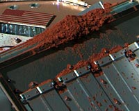 Tucson AZ (SPX) Aug 11, 2008 NASA's Phoenix Mars Lander has continued studies of its landing site by widening a trench, making overnight measurements of conductivity in the Martian soil and depositing a sample of surface soil into a gap between partially opened doors to an analytical oven on the lander. Phoenix's robotic arm delivered soil Thursday from a trench informally named "Rosy Red" through a narrow opening to a screen above the No. 5 oven on the lander's Thermal and Evolved-Gas Analyzer (TEGA). A few particles of the sample passed through the screen on Thursday, but not enough to fill the oven and allow analysis of the sample to begin. The Phoenix team sent commands for TEGA to vibrate the screen again on Friday, and more material reached the oven, though still not enough to proceed with analysis. "There appear to be clumps blocking the opening," said Doug Ming of NASA Johnson Space Center, Houston, the Phoenix team's science lead on Friday. "However, we have seen in the past that when this soil sits for a while, it disperses. We intend to fill an oven with this material, either by additional vibration of the same screen or by opening doors to one of the other TEGA cells." The conductivity measurements completed Wednesday ran from the afternoon of Phoenix's 70th Martian day, or sol, to the morning of Sol 71. A fork-like probe inserted into the soil checks how well heat and electricity move through the soil from one prong to another. Friday's activities by the spacecraft included extending the width of an exploratory trench informally named "Neverland," which extends between two rocks on the surface of the ground. Community Email This Article Comment On This Article Share This Article With Planet Earth