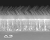 Troy NY (SPX) Nov 06, 2008 Researchers at Rensselaer Polytechnic Institute have discovered and demonstrated a new method for overcoming two major hurdles facing solar energy. By developing a new antireflective coating that boosts the amount of sunlight captured by solar panels and allows those panels to absorb the entire solar spectrum from nearly any angle, the research team has moved academia and industry closer to realizing high-efficiency, cost-effective solar power. "To get maximum efficiency when converting solar power into electricity, you want a solar panel that can absorb nearly every single photon of light, regardless of the sun's position in the sky," said Shawn-Yu Lin, professor of physics at Rensselaer and a member of the university's Future Chips Constellation, who led the research project. "Our new antireflective coating makes this possible." Results of the year-long project are explained in the paper "Realization of a Near Perfect Antireflection Coating for Silicon Solar Energy," published this week by the journal Optics Letters. An untreated silicon solar cell only absorbs 67.4 percent of sunlight shone upon it - meaning that nearly one-third of that sunlight is reflected away and thus unharvestable. From an economic and efficiency perspective, this unharvested light is wasted potential and a major barrier hampering the proliferation and widespread adoption of solar power. After a silicon surface was treated with Lin's new nanoengineered reflective coating, however, the material absorbed 96.21 percent of sunlight shone upon it - meaning that only 3.79 percent of the sunlight was reflected and unharvested. This huge gain in absorption was consistent across the entire spectrum of sunlight, from UV to visible light and infrared, and moves solar power a significant step forward toward economic viability. Lin's new coating also successfully tackles the tricky challenge of angles. Most surfaces and coatings are designed to absorb light - i.e., be antireflective - and transmit light - i.e., allow the light to pass through it - from a specific range of angles. Eyeglass lenses, for example, will absorb and transmit quite a bit of light from a light source directly in front of them, but those same lenses would absorb and transmit considerably less light if the light source were off to the side or on the wearer's periphery. This same is true of conventional solar panels, which is why some industrial solar arrays are mechanized to slowly move throughout the day so their panels are perfectly aligned with the sun's position in the sky. Without this automated movement, the panels would not be optimally positioned and would therefore absorb less sunlight. The tradeoff for this increased efficiency, however, is the energy needed to power the automation system, the cost of upkeeping this system, and the possibility of errors or misalignment. Lin's discovery could antiquate these automated solar arrays, as his antireflective coating absorbs sunlight evenly and equally from all angles. This means that a stationary solar panel treated with the coating would absorb 96.21 percent of sunlight no matter the position of the sun in the sky. So along with significantly better absorption of sunlight, Lin's discovery could also enable a new generation of stationary, more cost-efficient solar arrays. "At the beginning of the project, we asked 'would it be possible to create a single antireflective structure that can work from all angles?' Then we attacked the problem from a fundamental perspective, tested and fine-tuned our theory, and created a working device," Lin said. Rensselaer physics graduate student Mei-Ling Kuo played a key role in the investigations. Typical antireflective coatings are engineered to transmit light of one particular wavelength. Lin's new coating stacks seven of these layers, one on top of the other, in such a way that each layer enhances the antireflective properties of the layer below it. These additional layers also help to "bend" the flow of sunlight to an angle that augments the coating's antireflective properties. This means that each layer not only transmits sunlight, it also helps to capture any light that may have otherwise been reflected off of the layers below it. The seven layers, each with a height of 50 nanometers to 100 nanometers, are made up of silicon dioxide and titanium dioxide nanorods positioned at an oblique angle - each layer looks and functions similar to a dense forest where sunlight is "captured" between the trees. The nanorods were attached to a silicon substrate via chemical vapor disposition, and Lin said the new coating can be affixed to nearly any photovoltaic materials for use in solar cells, including III-V multi-junction and cadmium telluride. Along with Lin and Kuo, co-authors of the paper include E. Fred Schubert, Wellfleet Senior Constellation Professor of Future Chips at Rensselaer; Research Assistant Professor Jong Kyu Kim; physics graduate student David Poxson; and electrical engineering graduate student Frank Mont. Funding for the project was provided by the U.S. Department of Energy's Office of Basic Energy Sciences, as well as the U.S. Air Force Office of Scientific Research. Community Email This Article Comment On This Article Share This Article With Planet Earth