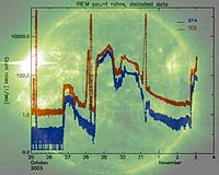 Paris, France (ESA) Feb 05, 2007 If a satellite encounters high-energy particles or other 'space weather' phenomena before ground controllers can take action, on-board electronics could be disrupted, scientific instruments damaged and, in very rare and extreme cases, spacecraft may even be lost. A sophisticated tool in development at ESOC promises to provide effective monitoring and forecasting for any type of mission. But since early 2005, SEISOP (Space Environment Information System for Operations), a space-weather monitoring and forecasting tool under development at ESA's Space Operations Centre, has been successfully providing near-real-time space weather reports for Integral, ESA's gamma-ray space observatory. Solar activity influences the entire solar system in several ways, including generating streams of fast-moving energetic particles and sudden bursts of damaging X-rays during solar flares. Energetic cosmic rays from elsewhere in the galaxy also penetrate into our solar system. These phenomena are some of the major sources of abnormal behaviour and aging for spacecraft and their sensitive scientific instruments.