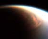 Paris, France (ESA) Feb 02, 2007A giant cloud half the size of the United States has been imaged on Saturn's moon Titan by the Cassini spacecraft. The cloud may be responsible for the material that fills the lakes discovered last year by Cassini's radar instrument. Cloaked by winter's shadow, this cloud has now come into view as winter turns to spring. The cloud extends down to 60 degrees north latitude, is roughly 2400 kilometers in diameter and engulfs almost the entire north pole of Titan. |