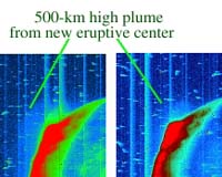 Pasadena - Oct 4, 2001 Jupiter's moon Io has pulled a surprise on NASA's Galileo spacecraft, hurling up the tallest volcanic plume ever seen, which arose from a previously unknown volcano. A different volcano had been lofting a plume seven months earlier, but Galileo saw no sign of that plume during its latest Io flyby in early August. Adding to the surprise, for the first time a Galileo instrument has caught particles freshly released from an eruption, giving scientists a direct sample of Io material to analyze. "This was totally unexpected," said the leader of that experiment, Dr. Louis Frank of the University of Iowa, Iowa City. "We've had wonderful images and other remote sensing of the volcanoes on Io before, but we've never caught the hot breath from one of them until now. Galileo smelled the volcano's strong breath and survived." The Jupiter-orbiting spacecraft has been gradually transmitting to Earth the new pictures and data from its flight over Io's north pole in early August, said Dr. Eilene Theilig, Galileo project manager at NASA's Jet Propulsion Laboratory, Pasadena, Calif. "Io just keeps amazing everyone," she said. "Now we're eager to see what will be happening there when Galileo flies near Io's south pole in two weeks." Galileo engineers and scientists had anticipated that the Aug. 6 flyby (Aug. 5, Pacific time) might take the spacecraft right through gases rising from a volcano named Tvashtar near Io's north pole. Tvashtar had been lofting a high plume when last seen seven months earlier by both Galileo and the passing Cassini spacecraft. However, the Tvashtar plume has not been found in images from the August flyby. Researchers were startled to find, instead, that a previously unknown volcano just 600 kilometers (370 miles) from Tvashtar was spewing a grand plume as Galileo passed. "After not seeing any active plumes at all in Io's high- latitude regions during the first five years of Galileo's tour, we've now seen two this year," said Galileo imaging team member Dr. Alfred McEwen of the University of Arizona, Tucson. The latest appears as a back-lit bulge above Io's surface in two newly released images. A third new image shows a white ring of material from the plume that has fallen back to the moon's surface, painting a circle around the source of the eruption. A fourth shows another new large plume deposit near Io's north pole. The new plume rises at least 500 kilometers (more than 300 miles) above ground, McEwen estimated, nearly 10 percent higher than the tallest ever seen before on Io. Scientists using Galileo's infrared mapping instrument have pinpointed the site of the eruption as a new hot spot at a location that was not known to be an active volcano, said JPL volcanologist Dr. Rosaly Lopes. It was surprising that the site leapt to such intense activity so abruptly with so little evidence of former volcanism, she said. "Galileo flew between two great volcanoes," Lopes said. "The plume we knew about might have settled down before we got there, but this new one sprang up suddenly." The particles detected in Galileo's plasma science instrument as the aging spacecraft sped within 194 kilometers (120 miles) of Io's surface likely came from the new hot spot rather than Tvashtar, Frank said. The volcanic material reached the spacecraft no more than a few minutes after rushing out of the source vent on the ground. The particles are apparently snowflakes made of sulfur-dioxide molecules with as many as 15 to 20 molecules clumped together in each flake. Frank and co-workers will try to wring information from the particle impacts about the temperature and speed of the gas in the plume. "That will get us a step closer to knowing about the newly released material from a volcanic vent," he said. Galileo is on course to fly about as close to Io again at 0123 Universal Time on Oct. 16 (6:23 p.m. Oct. 15, Pacific time). Its trajectory will take it close to Io's south pole, which may provide a look at details of another new hot spot near there identified from infrared mapping data this year. The polar passes in August and this month were also designed to provide data indicating whether Io generates its own magnetic field, as its sibling moon Ganymede does and Earth does. Io is the innermost of Jupiter's four largest moons and the most volcanically active world in the solar system. Galileo will get its sixth and final encounter with Io in January 2002. It has also flown 27 close approaches to Jupiter's other three large moons: Europa, Ganymede and Callisto. Since it began orbiting Jupiter in 1995, Galileo has survived more than three times the radiation exposure it was designed to withstand. It is still is good overall health, but performance of some instruments has been degraded. Community Email This Article Comment On This Article Related Links Detailed Image Releases Galileo Portal at JPL Search SpaceDaily Subscribe To SpaceDaily Express Jupiter and its Moons Explore The Ring World of Saturn and her moons The million outer planets of a star called Sol News Flash at Mercury