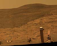 Pasadena CA (SPX) Jul 14, 2008Opportunity has completed work on the stand-off portion of the full-color panorama of the layered cliff known as "Cape Verde." It may take a couple of weeks for the entire panorama to arrive on Earth, depending on the volume of data the rover is able to transmit during communications links. |