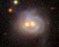 A study using NASA's Swift satellite and the Chandra X-ray Observatory has found a second supersized black hole at the heart of an unusual nearby galaxy already known to be sporting one. The galaxy, which is known as Markarian 739 or NGC 3758, lies 425 million light-years away toward the constellation Leo. Only about 11,000 light-years separate the two cores, each of which contains a black ... read more