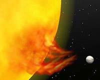 Vancouver - Jan 12, 2004 Canadian astronomers announced today the first evidence of a magnetic field on a planet outside of our solar system which is also the first observation of a planet heating its star. The report was presented last week by Ph.D. candidate Evgenya Shkolnik, Dr. Gordon Walker, both of the University of British Columbia, Vancouver, BC and Dr. David Bohlender of the National Research Council of Canada / Herzberg Institute for Astrophysics, Victoria, BC at the meeting of the American Astronomical Society in Atlanta, Georgia. The result may offer clues about the structure and formation of the giant planet. The trio observed the sun-like star HD179949 with the 3.6-meter (142-in) Canada-France-Hawaii Telescope atop Mauna Kea, Hawaii (a 14,000-ft. Dormant volcano) using its high-resolution spectrograph called Gecko. HD179949 is 90 light years away in the direction of the southern constellation of Sagittarius (the Archer) but it is too faint to be seen without a telescope. It was first reported to have a close-in planet by Tinney, Butler, Marcy and others in the first results of the Anglo-Australian planet search in 2000. The planet is at least 270 times more massive than the Earth, almost as big as Jupiter, and orbits the star every 3.093 days at 350,000 mph. Such tightly orbiting "roasters" or "hot jupiters" make up 20% of all known extrasolar planets. The star's chromosphere, a thin, hot layer just above the visible photosphere, was observed in the ultraviolet light emitted by singly-ionized Calcium atoms. Giant magnetic storms produce hot spots which are visible as bright patches in this light. Such a persistent hotspot is observed on HD 179949 keeping pace with the planet in its 3-day orbit for more than a year (or 100 orbits)! The hotspot appears to be moving across the surface of the star slightly ahead of, but keeping pace with the planet. Most evidence suggests the star is rotating too slowly to carry the spot around so quickly. The best explanation for this traveling hot spot is an interaction between the planet's magnetic field and the star's chromosphere, something predicted by Steve Saar of the Center for Astrophysics and Manfred Cuntz of the University of Texas at Arlington in 2000. If so, this is the first ever glimpse of a magnetic field on a planet outside of our solar system, and may provide clues about the planet's structure and formation. "If we are indeed witnessing the entanglement of the magnetic field of a star with that of its planet it gives us an entirely new insight into the nature of closely bound planets." -- Dr. Gordon Walker Obviously, more observations are needed to test if the magnetic interaction is a transient event or something longer lasting. Also, observations from the 8-meter Gemini-South Telescope in Chile of this stellar system are underway in the infrared light emitted by Helium which would map hotspots at higher levels of the chromosphere. Community Email This Article Comment On This Article Related Links Physics at University of British Columbia SpaceDaily Search SpaceDaily Subscribe To SpaceDaily Express Life Beyond Earth Lands Beyond Beyond - extra solar planets - news and science