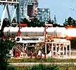 Hancock County - August 18, 1999 - The first successful long-duration test of a new, 250,000-pound thrust hybrid rocket motor was conducted at NASA's Stennis Space Center in south Mississippi August 13. The motor, which represents a new way of doing business for NASA, was designed and constructed by members of the Hybrid Propulsion Demonstration Program consortium. Companies involved in the consortium are: Lockheed Martin Astronautics, Boeing Rocketdyne, Lockheed Martin Michoud Space Systems, Thiokol Corporation and United Technologies Chemical Systems Division. The motor resembles the solid rocket boosters used on the Space Shuttle. This particular hybrid motor featured new technologies including a revolutionary new head-end combustion approach and ignition system designed by Lockheed Martin Michoud Space Systems in New Orleans. It is 70 inches in diameter, about 45 feet long, and weighs 125,000 pounds. The motor uses a solid fuel that is mixed and then poured into the casing of the motor and allowed to set and turn into a rubbery, semisolid form - similar to how gelatin is mixed, poured and allowed to set until it becomes almost solid. To ignite the motor and continue the process of ignition during its flight, an oxidizer must be injected into the core of the motor. The oxidizer must continually be fed into the motor as long as the motor is required to function. When the flow of oxidizer stops, the motor shuts down. The hybrid rocket motor being tested at Stennis is also environmentally safe. According to the NASA Environmental Office at Stennis, an environmental assessment was conducted that reviewed the possible impacts of testing the 250,000-pound thrust motor at Stennis Space Center. "The environmental impacts identified in the environmental assessment are rocket motor combustion air emissions and short-term noise," said NASA's Jennette Gordon, an environmental specialist at Stennis. "Short-term noise only impacts activities close to the test stand and, due to our buffer zone, does not impact local communities." The test, which was conducted on the center's E-1 test facility, ran for 15 seconds. At this time, test data indicates that the motor performance was extremely stable throughout the test, and everything went according to plan. "This long-duration test of the 250k hybrid rocket motor was an outstanding success," said NASA's Robert Bruce, project manager of the Hybrid Propulsion Demonstration Program at Stennis Space Center. "We're very happy to see our customer (the consortium) experience such great success, since they've been working on this program for so many years. The Stennis test team did an outstanding job." This was the second of several tests that will be performed on two separate Hybrid Propulsion Demonstration Program hybrid motors. The tests will demonstrate two different methods of ignition, as well as different methods of injecting the oxidizer.