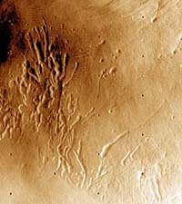 Edinburgh - June 27, 2001 The search for liquid water is key for finding habitable environments on Mars today--places where prebiotic chemistry and/or life could still be going on. Not surprisingly, the mantra, "Follow the Water," has become a primary driver in NASA's new Mars Program. Water in liquid form is regarded as essential for life. But how can we explore for life on Mars when liquid water is unstable at the surface today due to an atmospheric density that is only ~1/1000 of Earth's? This is a challenge we must overcome if we are to mount a successful search for life on Mars. While many scientists believe that liquid water could be present on Mars today at a depth of several kilometers beneath the surface, we simply do not yet have the technology to drill to those depths from the simple robotic platforms we will be sending. At best, we can hope to drill a few meters to perhaps tens of meters with current technologies. But what If there was shallow ground water on Mars within a few meters of the surface? Then small rovers and landers could probably drill and find it. This would better than having to postpone exploring for deep subsurface water (and life) until human astronauts could go to Mars and run deep drilling rigs. Humans will probably not go to Mars for at least another twenty years. That's a long time to wait! So can we do in the meantime? Scientists are confident that there's water on Mars' polar caps. But that water is perpetually frozen and unavailable for biology. But there could be special geological exceptions where that water could exist as a liquid and those potential "oases" (within the otherwise frozen deserts of the polar regions) are important targets for astrobiology in the next two decades. There is also speculation that very young channels and debris aprons found on many north-facing slopes at high latitudes formed when liquid water seeped out from the subsurface. To be liquid at those latitudes requires that near surface water be both saline and warm, but probably still within the range for life. Unfortunately all of the seep sites discovered so far are on slopes inaccessible to landers and rovers. One way to have liquid water under the polar caps at shallow depths would be through subglacial volcanism. Such volcano-ice interactions could be going on beneath the North polar cap of Mars today, or even within the adjacent permafrost around the margins of the ice cap. On Earth, subglacial volcanic eruptions are often associated with outbursts of water that create a variety of distinctive geological features. On Mars, such outbursts of liquid water could carry microbes and their byproducts to the surface where they could be incorporated into ground ice and preserved. Such deposits could be easily accessed by rovers in upcoming missions. Meredith Payne and Jack Farmer from Arizona State University have been focusing their recent research efforts on finding such environments on Mars. They have studied all available Viking and Mars Orbiter Camera images taken on and near the North polar cap searching for the tell-tell signs of subglacial volcanic eruptions. This search has produced several potential sites of probable recent volcano-ice interactions and was reviewed and compared with similar features in Iceland during a poster presentation on Wednesday June 27 at Earth Systems Processes in Edinburgh, Scotland. "We are presently working to merge all Viking, MOC and Mars Laser Altimeter (topographic) data into a spatially correlated base map for each area," Farmer said. "This effort will allow us to make detailed geologic maps and establish age relationships between major rock units and terrain types. We have been updating our mapping effort as new MOC and MOLA data become available." These correlated data sets will allow Payne and Farmer to refine hypotheses concerning the origin of these features and test them through comparisons with remote sensing of analogous landforms in Iceland of known origin. "Discoveries in the last two decades have greatly extended the known range of terrestrial habitats where life survives," Farmer explained. "Viable microbial communities have been found living in deep (-2800 m) geothermal groundwater at 349 K and pressures >300 bar�.Furthermore, microbes have been postulated to exist in basaltic rocks in rinds of altered volcanic glass. All of these conditions could exist in polar regions of Mars today where subglacial volcanism has occurred." Payne and Farmer will soon begin fieldwork in Iceland to better understand the processes associated with subglacial volcanism and the habitats for life created by such processes. Community Email This Article Comment On This Article Related Links Geological Sciences at Arizona State Univ Geological Society of London Geological Society of America SpaceDaily Search SpaceDaily Subscribe To SpaceDaily Express Mars News and Information at MarsDaily.com Lunar Dreams and more