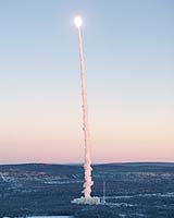 Stockholm, Sweden (SPX) Nov 25, 2004 The Maxus 6 sounding rocket was successfully launched from Esrange, the Swedish Space Corporation rocket base in Kiruna, at 09:35 CET (08:35 UT) Nov 22. Carrying a payload of eight scientific experiments, the rocket reached an altitude of 706 km before falling back to Earth - providing twelve minutes of microgravity. Powered by a Castor IV b motor, the Maxus 6 rocket was launched into clear blue skies shortly after sunrise. The experiments, in biology, fluid physics and material science, were monitored throughout using mission telemetry, which functioned perfectly. Video images and data received at Esrange show that the experiments went well. The payload package was found soon after landing and recovered by helicopter. Flight samples of the materials science and the biological experiments will now be returned to the scientists for further scientific analysis at their home institutes. Speaking from the control room at Esrange, Wolfgang Herfs, ESA's sounding rocket project manager, congratulated all involved in the Maxus 6 campaign. Maxus 7, is planned for the spring of 2006. Community Email This Article Comment On This Article Related Links Esrange SpaceDaily Search SpaceDaily Subscribe To SpaceDaily Express Launch Pad at Space-Travel.com