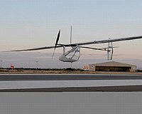 Las Cruces NM (SPX) Jun 09, 2009 The Physical Science Laboratory of New Mexico State University announced that its Unmanned Aircraft Systems Flight Test Center successfully hosted the first flight last month of a solar-powered unmanned aircraft in the National Airspace System. The Flight Test Center, in coordination with the Federal Aviation Administration, provides the only national airspace approved for flight tests of unmanned aircraft. "The FTC is a 15,000-square-mile national resource for developers of unmanned aircraft," said FTC Director Steve Hottman. "We are pleased to be a part of the historic SunLight Eagle test flights." The SunLight Eagle, flown by Aurora Flight Sciences Corporation of Manassas, Va., was originally powered with bicycle-like pedals and still holds four world records for human-powered flight. For its two test flights at Las Cruces International Airport, the pedals were replaced with solar panels, an electric motor, a high-performance battery, and a flight control system. "This flight was an intermediate step to the ultimate goal of flying an unmanned aircraft autonomously at altitudes above 50,000 feet for several days," said Robyn Allen, Aurora program manager. Although the SunLight Eagle has a wingspan of 114 feet, it weighed only 173 pounds at liftoff. "Because of the unique construction of the SunLight Eagle," said Dennis Zaklan, FTC manager for the SunLight Eagle project, "we were hoping for a crosswind under two knots. It was a perfect morning with only a hint of a breeze that allowed us to conduct the flight safely. The success of the flights was made possible by excellent teamwork between Aurora, NMSU, and Las Cruces Airport staff." The SunLight Eagle may return soon to Las Cruces, once it is fitted with equipment that allows it to fly longer at higher altitude. "We hope to be back at NMSU by late summer," Allen said. Share This Article With Planet Earth