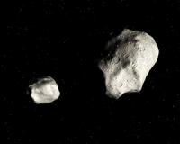 Some Asteroids Live In Own Little WorldsBoulder CO (SPX) Aug 26, 2010 While the common perception of asteroids is that they are giant rocks lumbering about in orbit, a new study shows they actually are constantly changing "little worlds" that can give birth to smaller asteroids that split off to start their own lives as they circle around the sun. Astronomers have known that small asteroids get "spun up" to fast rotation rates by sunlight falling on them, mu ... read more |