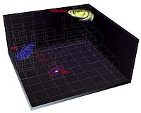 Cambridge MA (SPX) Mar 03, 2005 Astronomers using the National Science Foundation's Very Long Baseline Array (VLBA) have measured the motion across the sky of a galaxy nearly 2.4 million light-years from Earth. While scientists have been measuring the motion of galaxies directly toward or away from Earth for decades, this is the first time that the transverse motion (called proper motion by astronomers) has been measured for a galaxy that is not a satellite of our own Milky Way Galaxy. An international scientific team analyzed VLBA observations made over two and a half years to detect minuscule shifts in the sky position of the spiral galaxy M33. Combined with previous measurements of the galaxy's motion toward Earth, the new data allowed the astronomers to calculate M33's movement in three dimensions for the first time. "A snail crawling on Mars would appear to be moving across the surface more than 100 times faster than the motion we measured for this galaxy," said Mark Reid, of the Harvard-Smithsonian Center for Astrophysics in Cambridge, MA. M33 is a satellite of the larger galaxy M31, the well-known Andromeda Galaxy that is the most distant object visible to the naked eye. Both are part of the Local Group of galaxies that includes the Milky Way. In addition to measuring the motion of M33 as a whole, the astronomers also were able to make a direct measurement of the spiral galaxy's rotation. Both measurements were made by observing the changes in position of giant clouds of molecules inside the galaxy. The water vapor in these clouds acts as a natural maser, strengthening, or amplifying, radio emission the same way that lasers amplify light emission. The natural masers acted as bright radio beacons whose movement could be tracked by the ultra-sharp radio "vision" of the VLBA. Reid and his colleagues plan to continue measuring M33's motion and also to make similar measurements of M31's motion. This will allow them to answer important questions about the composition, history and fates of the two galaxies as well as of the Milky Way. "We want to determine the orbits of M31 and M33. That will help us learn about their history, specifically, how close have they come in the past?" Reid explained. "If they have passed very closely, then maybe M33's small size is a result of having material pulled off it by M31 during the close encounter," he added. Accurate knowledge of the motions of both galaxies also will help determine if there's a collision in their future. In addition, orbital analysis can give astronomers valuable clues about the amount and distribution of dark matter in the galaxies. The direct measurement of M33's transverse angular spin is the first time such a measurement has been done accurately. In the 1920s, some astronomers thought they had measured the spin of spiral galaxies, but their results proved to be in error. More recently, radio astronomers have measured the Doppler shift of hydrogen gas in galaxies to determine the spin speed, which, when combined with the angular spin, gives a direct estimate of the distance of the galaxy. The astronomers' task was not simple. Not only did they have to detect an impressively tiny amount of motion across the sky, but they also had to separate the actual motion of M33 from the apparent motion caused by our Solar System's motion around the center of the Milky Way. The motion of the Solar System and the Earth around the Galactic center, some 26,000 light-years away, has been accurately measured using the VLBA over the last decade. "The VLBA is the only telescope system in the world that could do this work," Reid said. "Its extraordinary ability to resolve fine detail is unmatched and was the absolute prerequisite to making these measurements." Reid worked with Andreas Brunthaler of the Max Planck Institute for Radioastronomy in Bonn, Germany; Heino Falcke of ASTRON in the Netherlands; Lincoln Greenhill, also of the Harvard- Smithsonian Center for Astrophysics; and Christian Henkel, also of the Max Planck Institute in Bonn. The scientists reported their findings in the March 4 issue of the journal Science. The VLBA is a system of ten radio-telescope antennas, each with a dish 25 meters (82 feet) in diameter and weighing 240 tons. From Mauna Kea on the Big Island of Hawaii to St. Croix in the U.S. Virgin Islands, the VLBA spans more than 5,000 miles, providing astronomers with the sharpest vision of any telescope on Earth or in orbit. Dedicated in 1993, the VLBA has an ability to see fine detail equivalent to being able to stand in New York and read a newspaper in Los Angeles. The VLBA's scientific achievements include making the most accurate distance measurement ever made of an object beyond the Milky Way Galaxy; the first mapping of the magnetic field of a star other than the Sun; movies of motions in powerful cosmic jets and of distant supernova explosions; the first measurement of the propagation speed of gravity; and long-term measurements that have improved the reference frame used to map the Universe and detect tectonic motions of Earth's continents. Community Email This Article Comment On This Article Related Links SpaceDaily Search SpaceDaily Subscribe To SpaceDaily Express Space Tourism, Space Transport and Space Exploration News