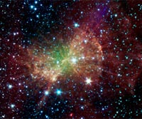 If this were an inkblot test, you might see a bow tie or a butterfly depending on your personality. An astronomer would likely see the remains of a dying star scattered about space - precisely what this is. NASA's Spitzer Space Telescope captured this infrared view of what's called a planetary nebula, which is a cloud of material expelled by a burnt out star, called a white dwarf. Th ... read more